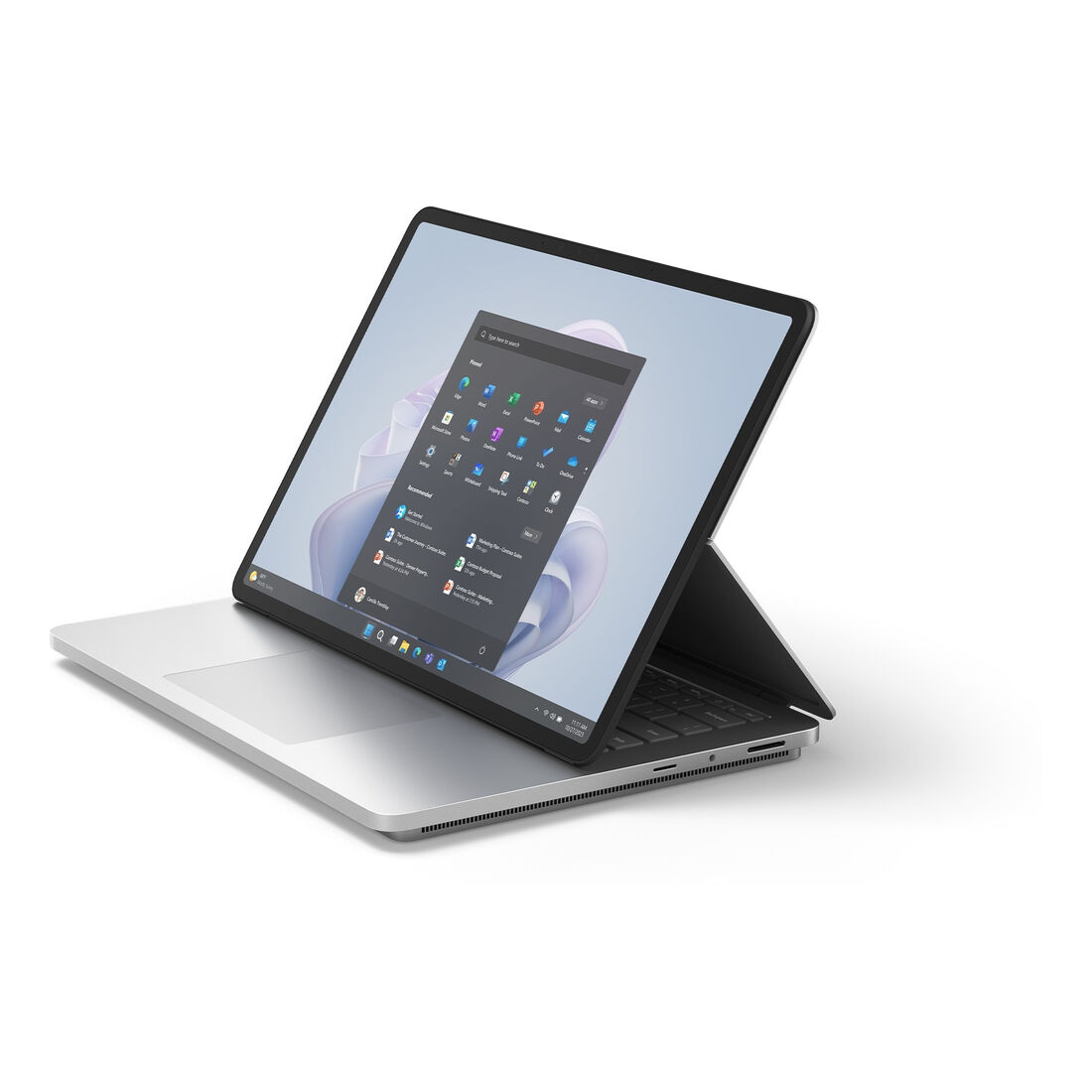 Microsoft Surface Laptop Studio 2 . Tipo di prodotto: Ibrido (2 in 1), Fattore di forma: Convertibile (Floating Slider). Famiglia processore: Intel® Core™ i7, Modello del processore: i7-13800H. Dimensioni schermo: 36,6 cm (14.4″), Risoluzione del display: 2400 x 1600 Pixel, Touch screen. RAM installata: 32 GB, Tipo di RAM: LPDDR5x-SDRAM. Capacità totale di archiviazione: 1 TB, Supporto di memoria: SSD. Modello scheda grafica integrata: Intel Iris Xe Graphics, Scheda grafica dedicata: NVIDIA GeForce RTX 4050. Sistema operativo incluso: Windows 11 Pro. Colore del prodotto: Platino
