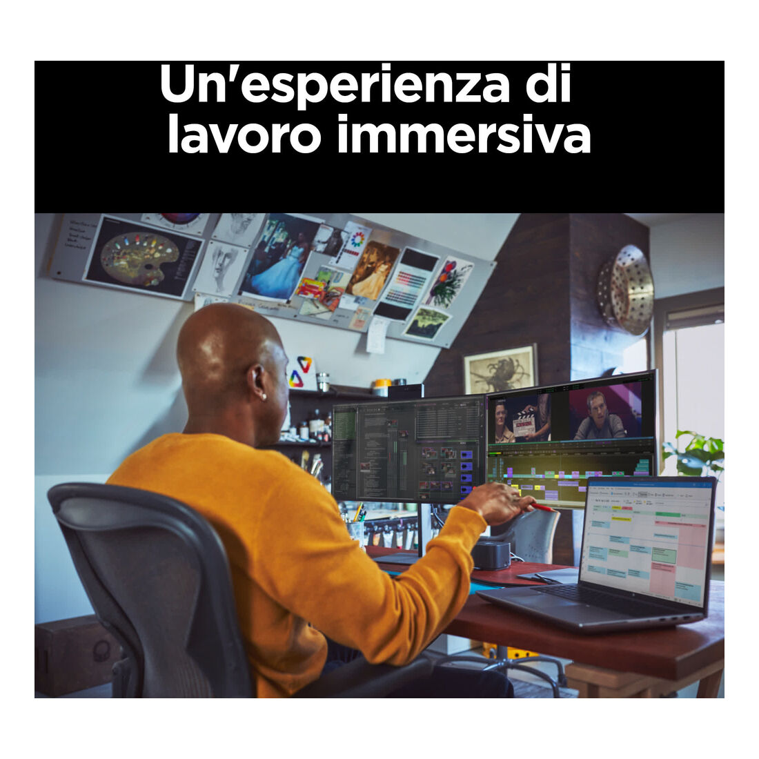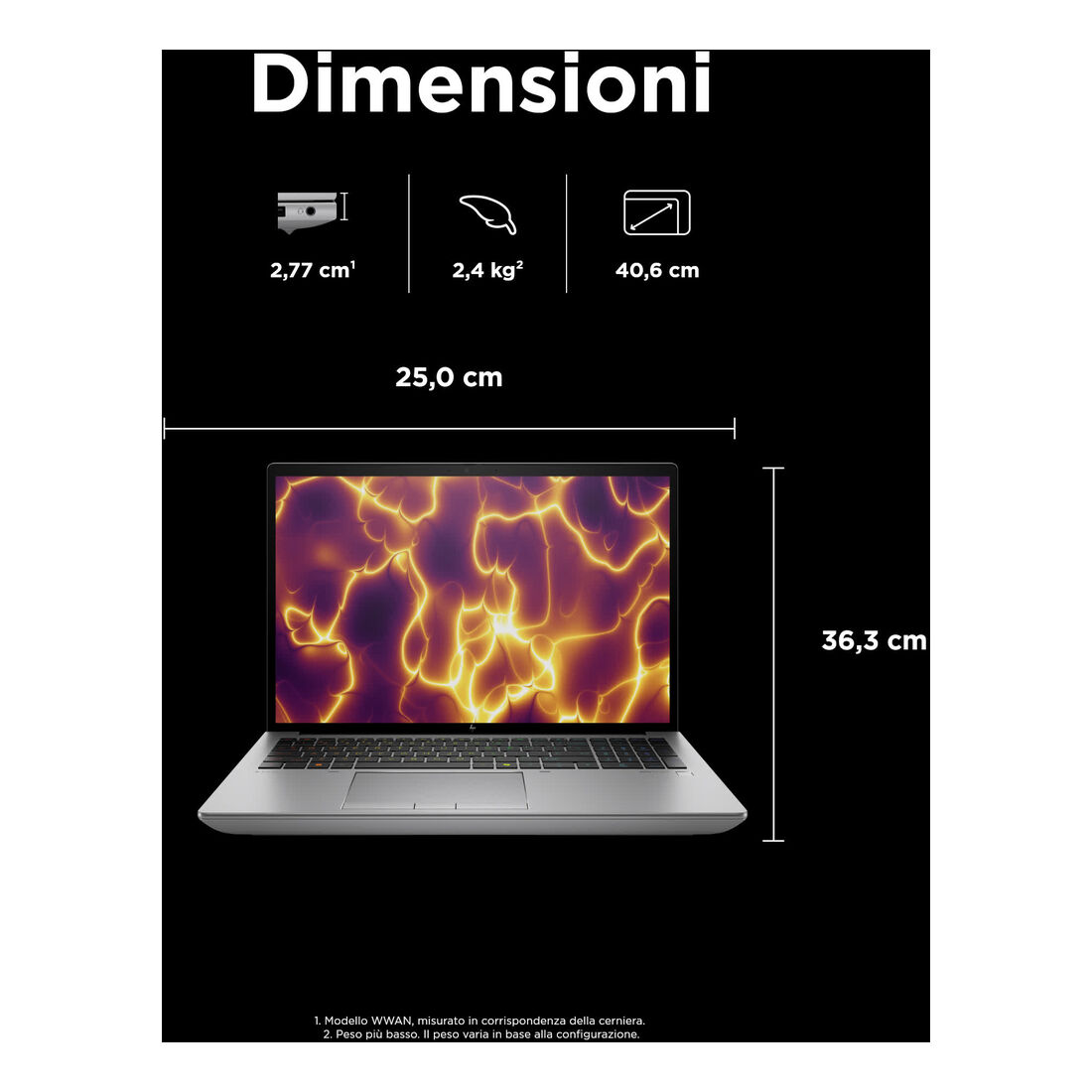 HP ZBook Fury G11. Tipo di prodotto: Workstation mobile, Fattore di forma: Clamshell. Famiglia processore: Intel® Core™ i7, Modello del processore: i7-14700HX. Dimensioni diagonale schermo: 40,6 cm (16″), Tipologia HD: WUXGA, Risoluzione del display: 1920 x 1200 Pixel. RAM installata: 32 GB, Tipo di RAM: DDR5-SDRAM. Capacità totale di archiviazione: 1 TB, Supporto di memoria: SSD. Modello scheda grafica integrata: Intel® UHD Graphics, Scheda grafica dedicata: NVIDIA RTX A1000. Sistema operativo incluso: Windows 11 Pro. Colore del prodotto: Argento