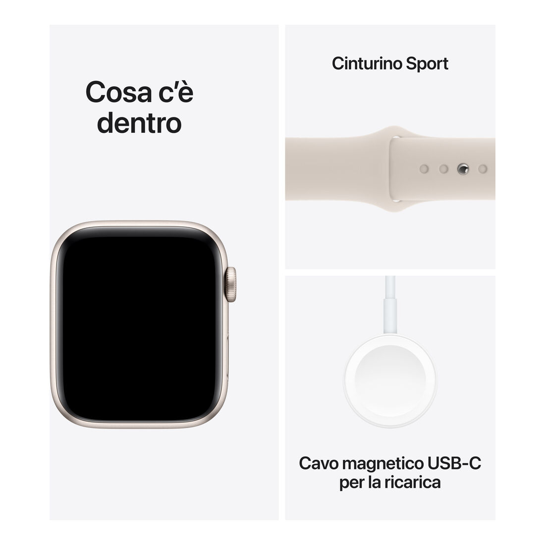 Apple Watch SE GPS Cassa 44mm in Alluminio Galassia con Cinturino Sport Galassia – M/L. Tecnologia display: OLED, Risoluzione del display: 368 x 448 Pixel, Touch screen. Memoria flash: 32 GB. Wi-Fi. GPS (satellitare). Peso: 32,9 g. Impermeabile fino a: 50 m, Colore cinturino: Beige, Dimensione del cinturino: M/L. Sistema operativo incluso: watchOS 9