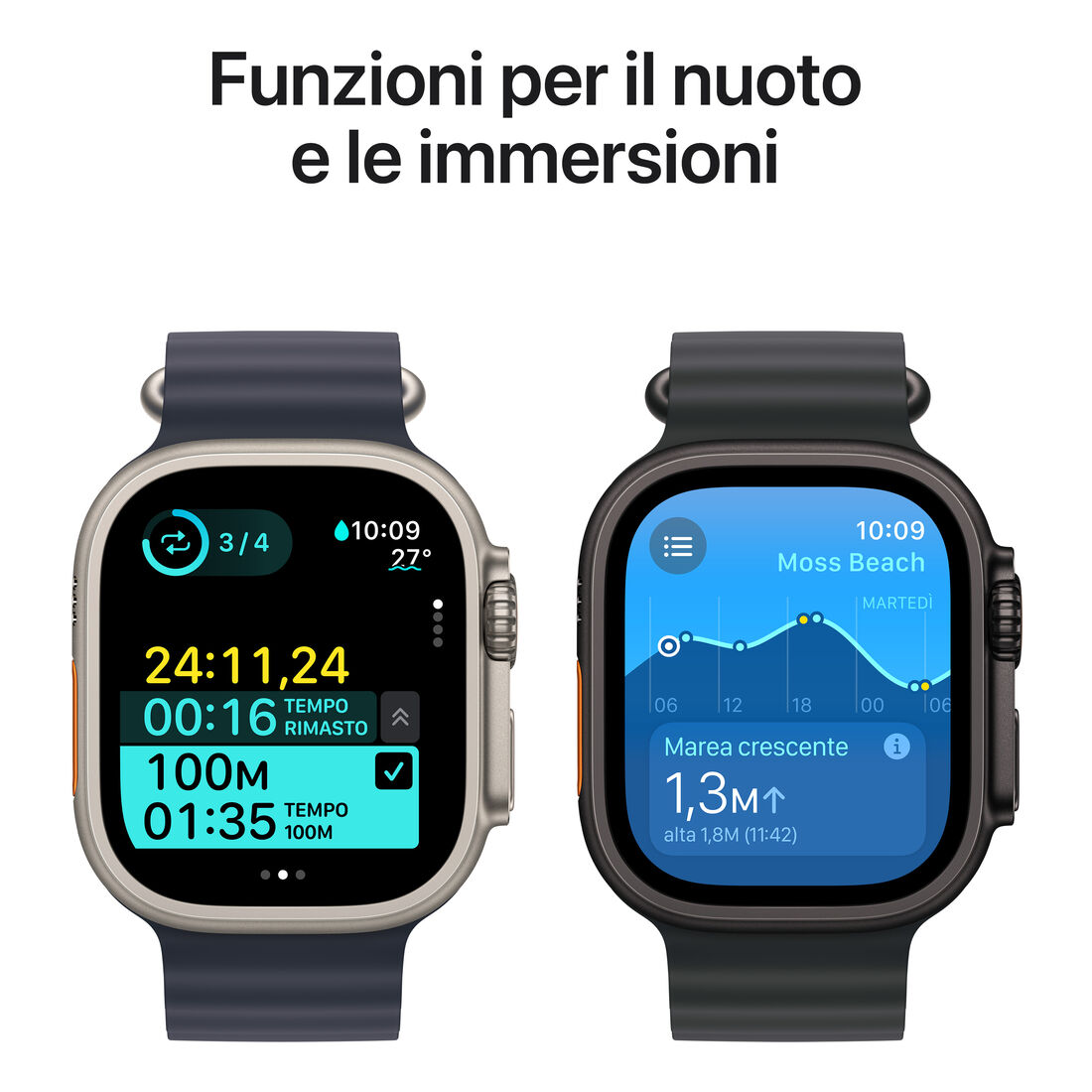 Apple Watch Ultra 2 GPS + Cellular 49mm Cassa Titanio Nero con Nero Ocean Band. Tecnologia display: OLED, Risoluzione del display: 410 x 502 Pixel, Touch screen. Memoria flash: 64 GB. Wi-Fi. GPS (satellitare). Peso: 61,8 g. Impermeabile fino a: 100 m, Colore cinturino: Nero. Sistema operativo incluso: watchOS 11
