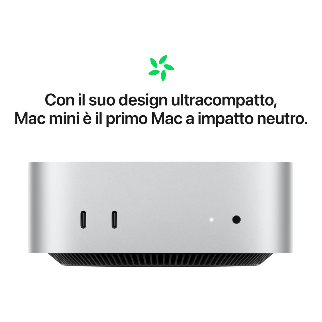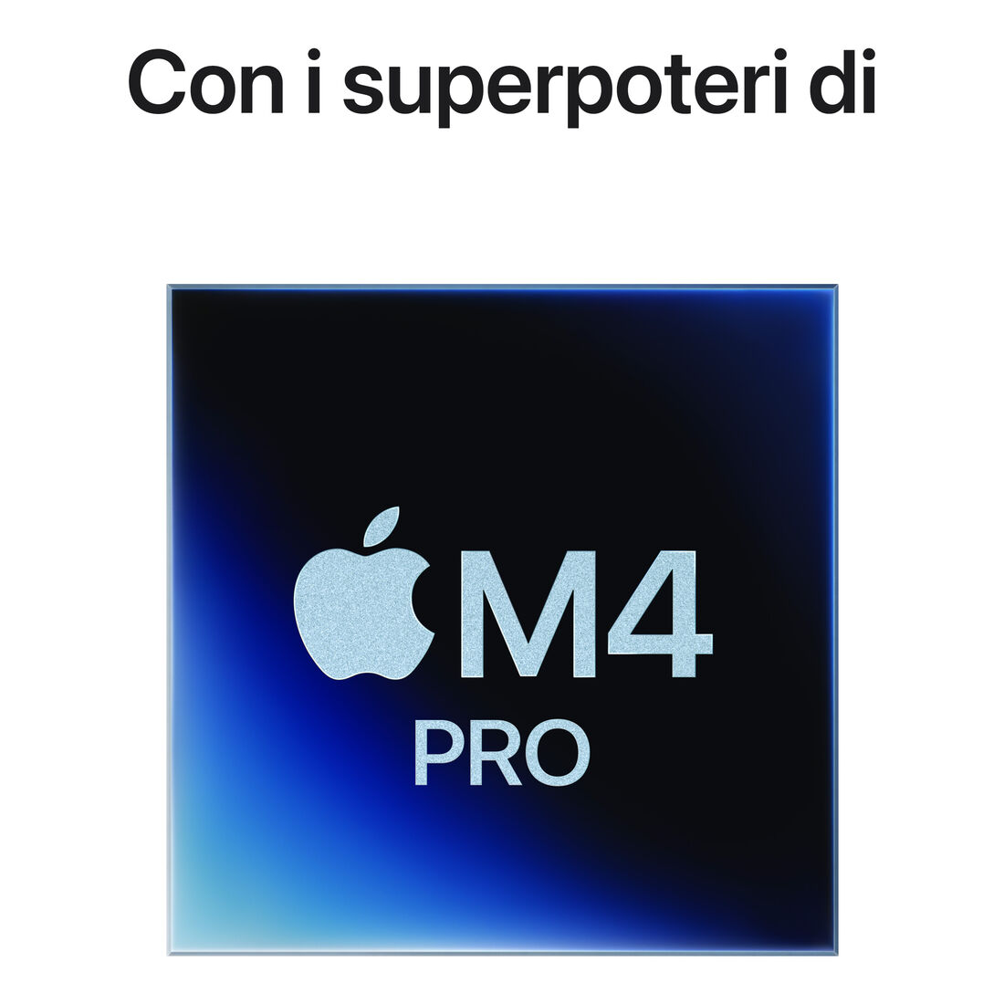 Apple Mac mini – Chip M4 Pro 12‑core CPU, 16‑core GPU, 24GB, 512GB SSD. Famiglia processore: Apple M, Modello del processore: M4 Pro. RAM installata: 24 GB. Capacità totale di archiviazione: 512 GB, Supporto di memoria: SSD. Modello scheda grafica integrata: Apple GPU. Wi-Fi. Sistema operativo incluso: macOS Sequoia. Alimentazione: 155 W. Tipo di case: Mini PC. Tipo di prodotto: Mini PC. Peso: 730 g. Colore del prodotto: Argento