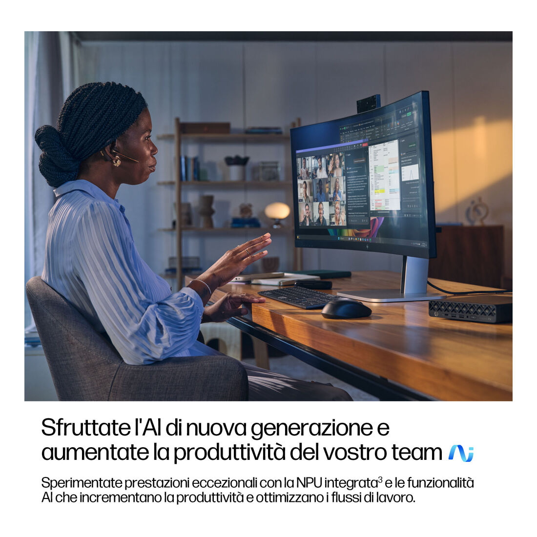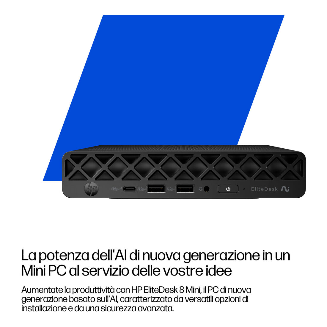 HP EliteDesk 8 Mini G1a Next Gen AI Wolf Pro Security Edition. Frequenza del processore: 2 GHz, Famiglia processore: AMD Ryzen Al 7, Modello del processore: 350. RAM installata: 32 GB, Tipo di RAM: DDR5-SDRAM. Capacità totale di archiviazione: 1 TB, Supporto di memoria: SSD. Modello scheda grafica integrata: AMD Radeon 860M. Wi-Fi. Sistema operativo incluso: Windows 11 Pro. Alimentazione: 90 W. Tipo di case: Mini PC. Tipo di prodotto: Mini PC. Peso: 1,42 kg. Colore del prodotto: Nero