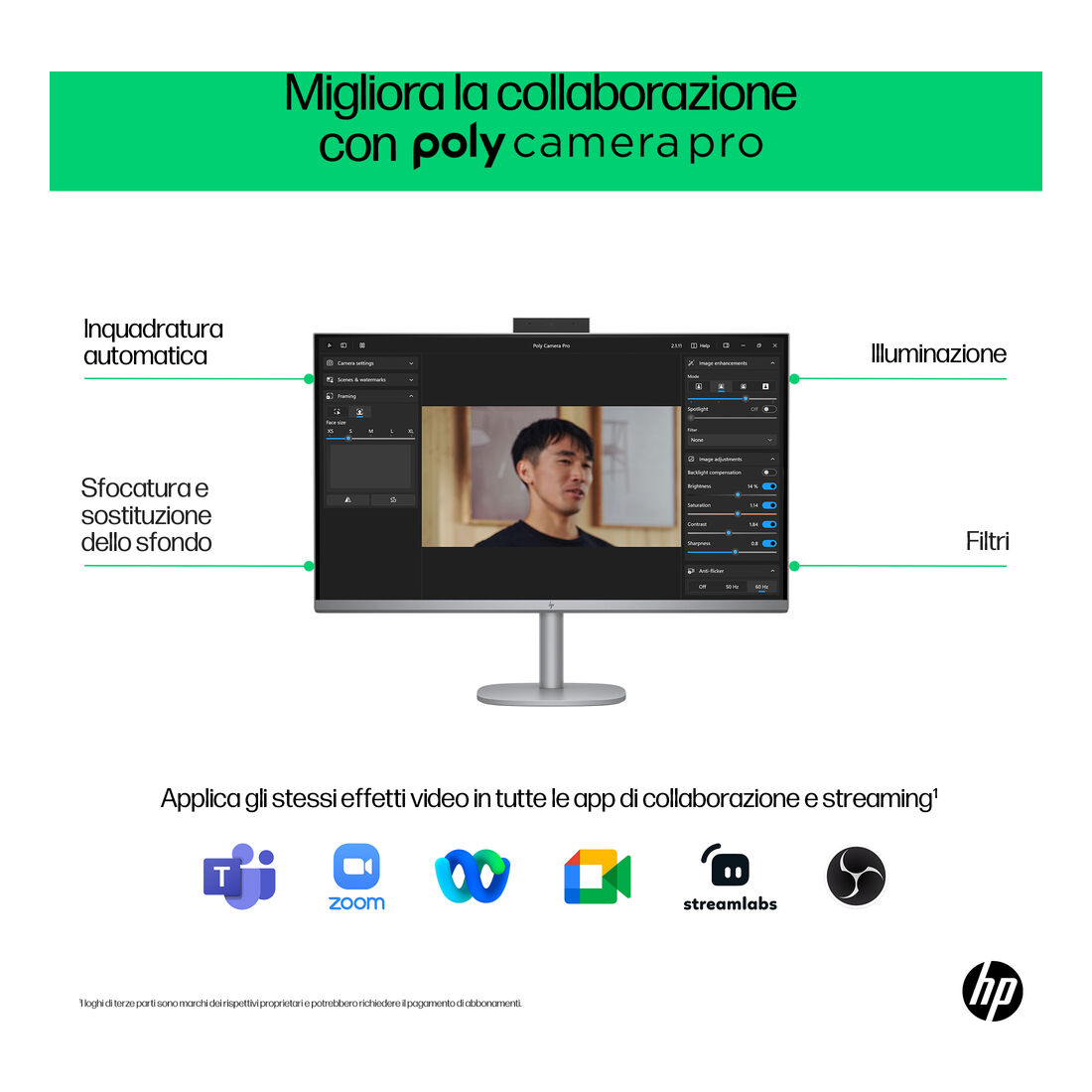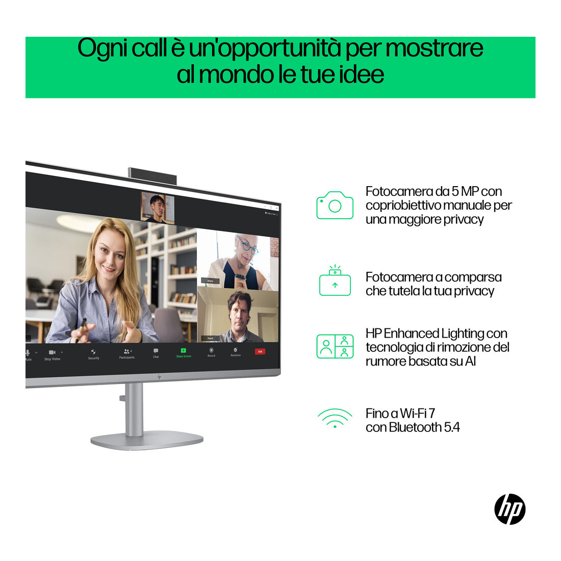 HP OmniStudio X 32-c0008nl. Tipo di prodotto: PC All-in-one. Dimensioni diagonale schermo: 80 cm (31.5″), Tipologia HD: 4K Ultra HD, Risoluzione del display: 3840 x 2160 Pixel, Tipo di pannello: IPS. Famiglia processore: Intel Core Ultra 5. RAM installata: 32 GB, Tipo di RAM: DDR5-SDRAM. Capacità totale di archiviazione: 1 TB, Supporto di memoria: SSD. Modello scheda grafica integrata: Intel Arc Graphics. Fotocamera integrata. Sistema operativo incluso: Windows 11 Home. Colore del prodotto: Argento