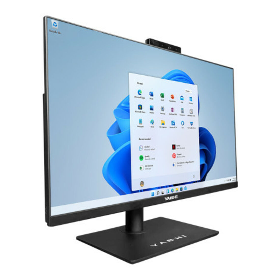 YASHI AY24801. Tipo di prodotto: PC All-in-one. Dimensioni diagonale schermo: 60,5 cm (23.8″), Tipologia HD: Full HD, Risoluzione del display: 1920 x 1080 Pixel. Famiglia processore: Intel® Core™ i5. RAM installata: 8 GB, Tipo di RAM: DDR4-SDRAM. Capacità totale di archiviazione: 512 GB, Supporto di memoria: SSD. Modello scheda grafica integrata: Intel® UHD Graphics. Fotocamera integrata. Sistema operativo incluso: Windows 11 Pro. Colore del prodotto: Nero
