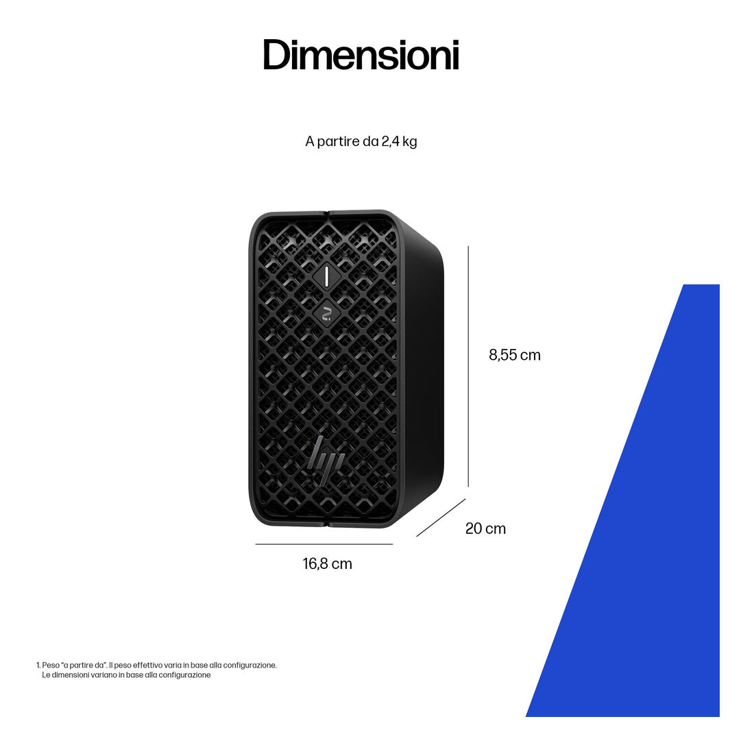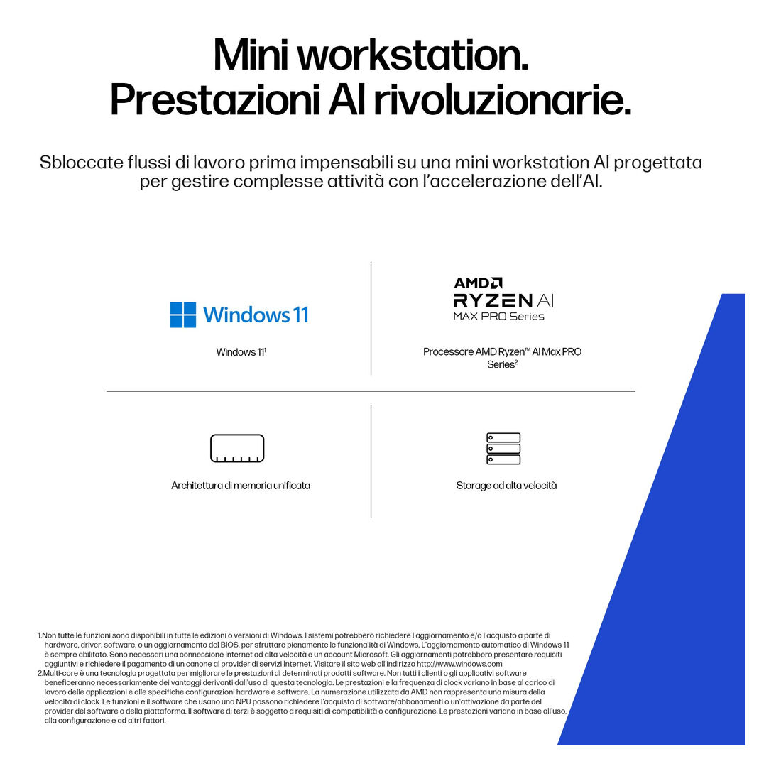 HP Z2 Mini G1a Wolf Pro Security Edition Copilot+ PC AMD Ryzen AI Max PRO 390 64 GB LPDDR5x-SDRAM 1 TB SSD Windows 11 Pro Mini PC Stazione di lavoro Nero