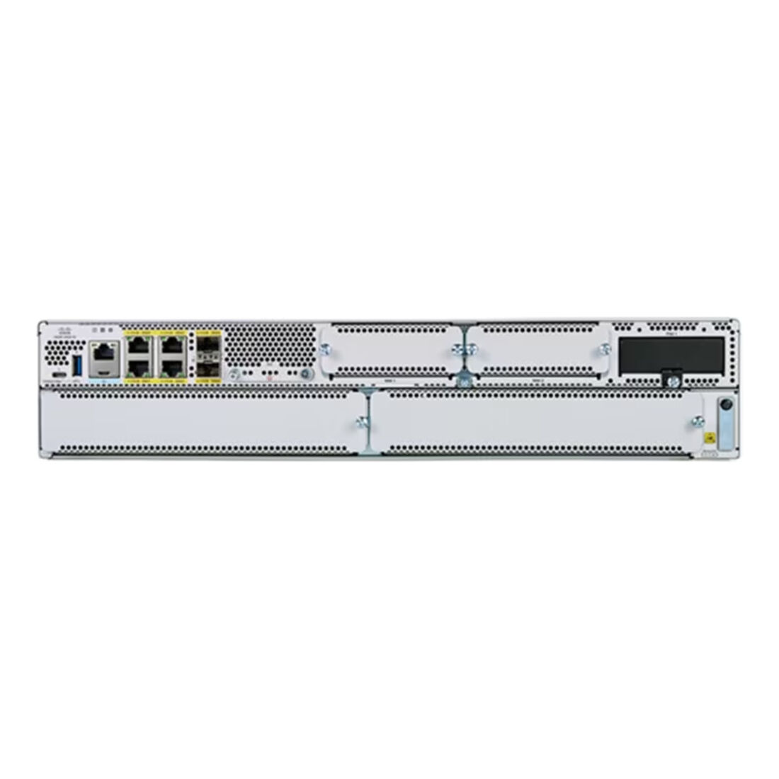Cisco C8300-2N2S-6T. Standard di rete: IEEE 802.1Q, IEEE 802.1ag, IEEE 802.3ah, Tipo di interfaccia Ethernet: Gigabit Ethernet, Velocità trasferimento Ethernet LAN: 100,1000 Mbit/s. Versione USB: 3.2 Gen 1 (3.1 Gen 1). Protocollo di commutazione: MPLS, Protocollo di routing: BGP, EIGRP, HSRP, IP, IS-IS, LISP, MPLS, OSPF, OSPFv3, RIP, RIP-2, VRRP, Caratteristiche IPv4 e IPv6: IPv4/IPv6 access-control list (ACL). Algoritmi di sicurezza supportati: 256-bit AES, 2048-bit RSA, SHA-1, SHA-2, Metodo di autenticazione: AAA, RSA (2048 bit), ESP-256-CBC, HMAC-SHA1, ECDSA (256/384 bit). Produttore processore: Intel, Supporto di memoria: SSD, Capacità memoria interna: 16 GB