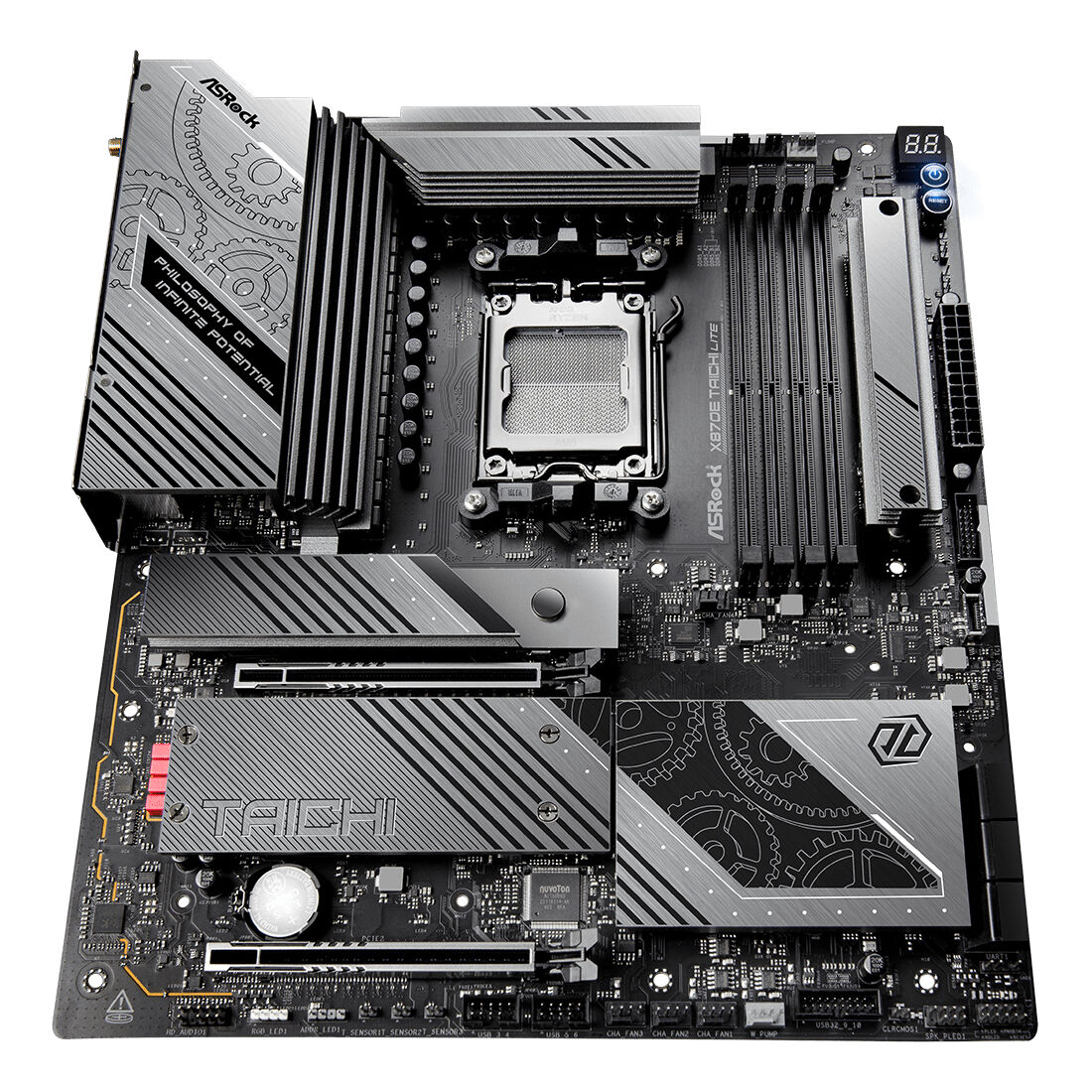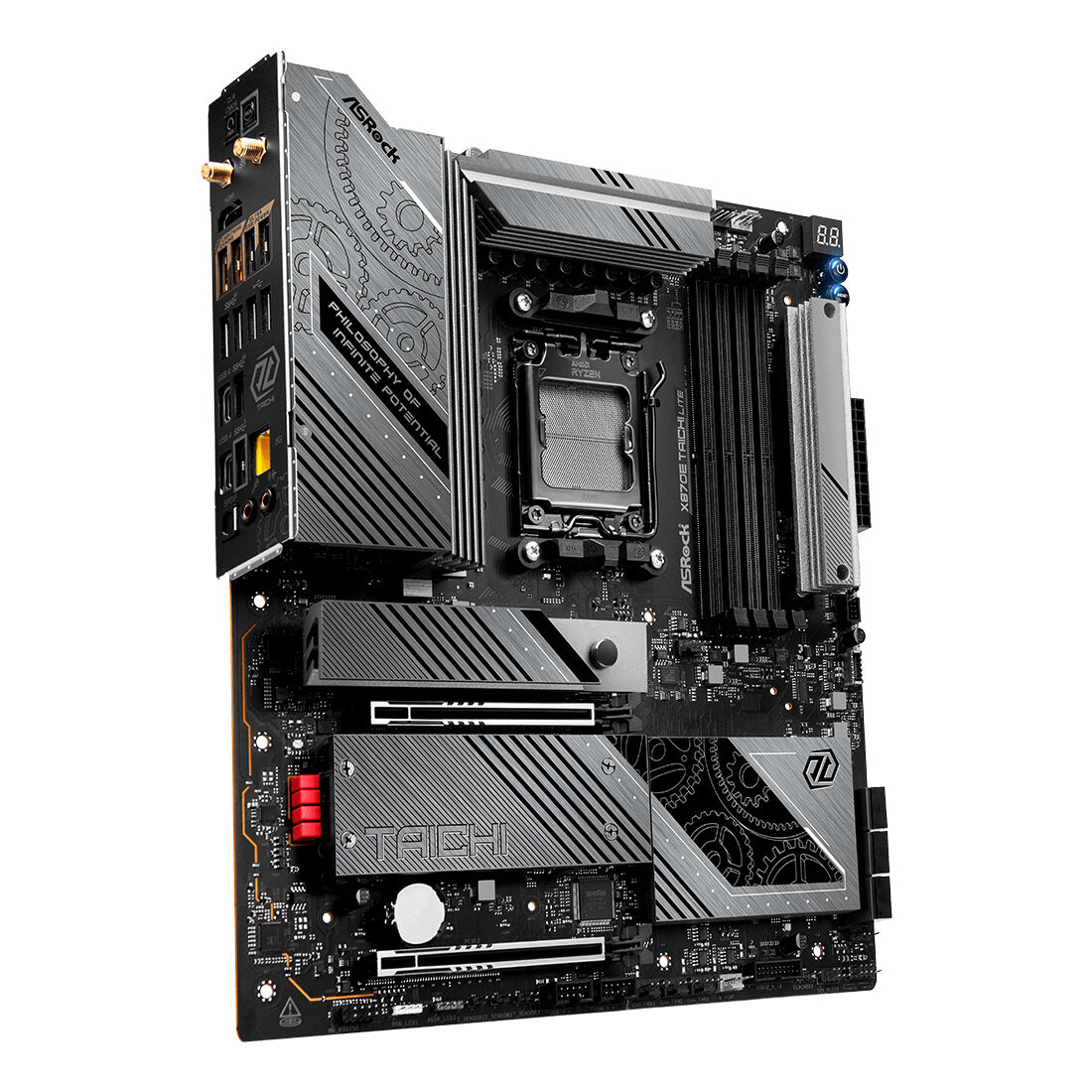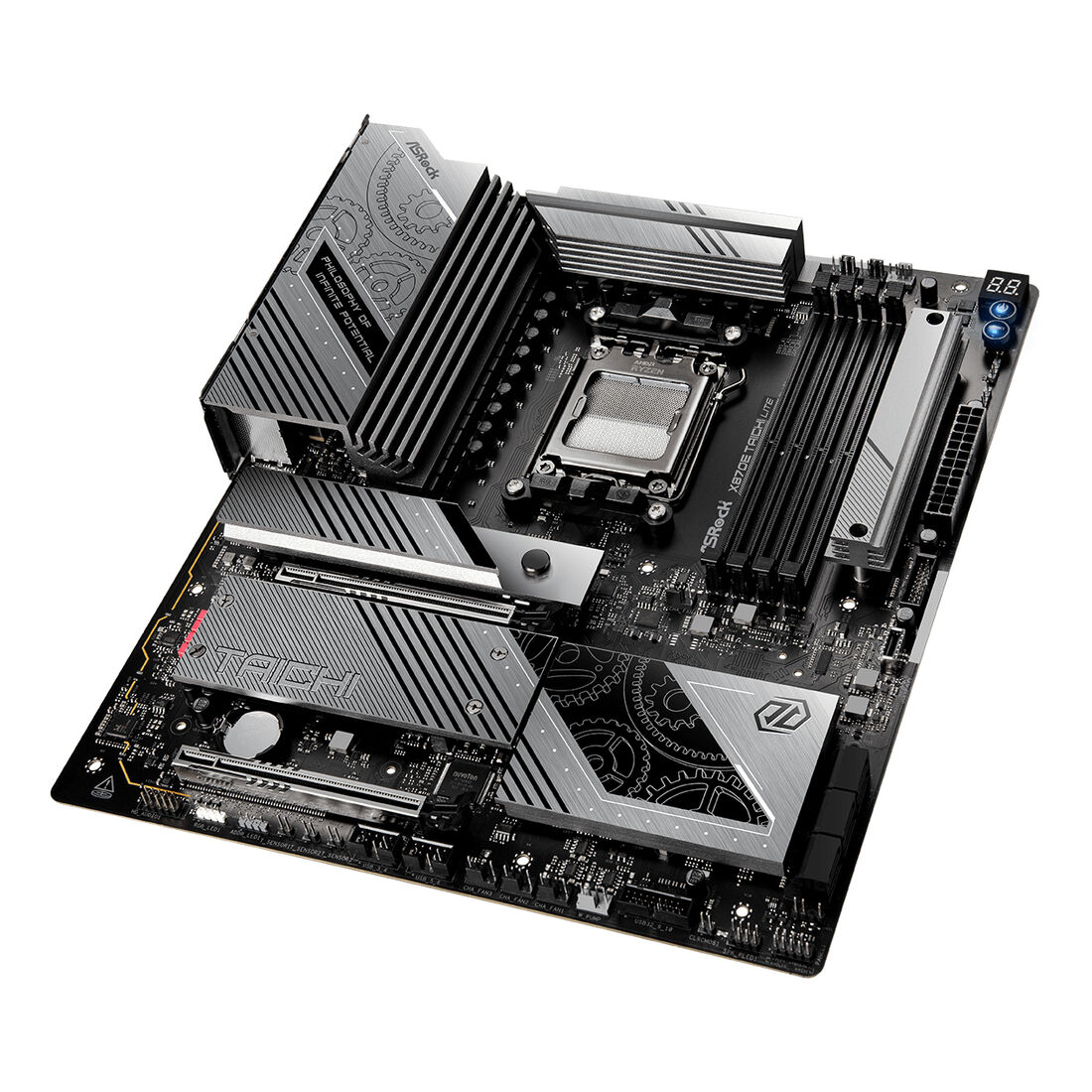 Asrock 90-MXBPA0-A0UAYZ. Produttore processore: AMD, Presa per processore: Socket AM5, Processori compatibili: AMD Ryzen 7000 Series, AMD Ryzen 8000 Series, AMD Ryzen 9000 Series. Tipi di memoria supportati: DDR5-SDRAM, RAM massima supportata: 256 GB, tipo di slot di memoria: DIMM. Interfacce dell’unità di archiviazione supportate: M.2, SATA III, Tipi di unità di archiviazione supportate: HDD & SSD, Livelli RAID: 0, 1. Tecnologia di processo parallela: CrossFire. Tipo di interfaccia Ethernet: 2.5 Gigabit Ethernet, Controller LAN: Dragon RTL8125BG, Wi-Fi standard: Wi-Fi 7 (802.11be)