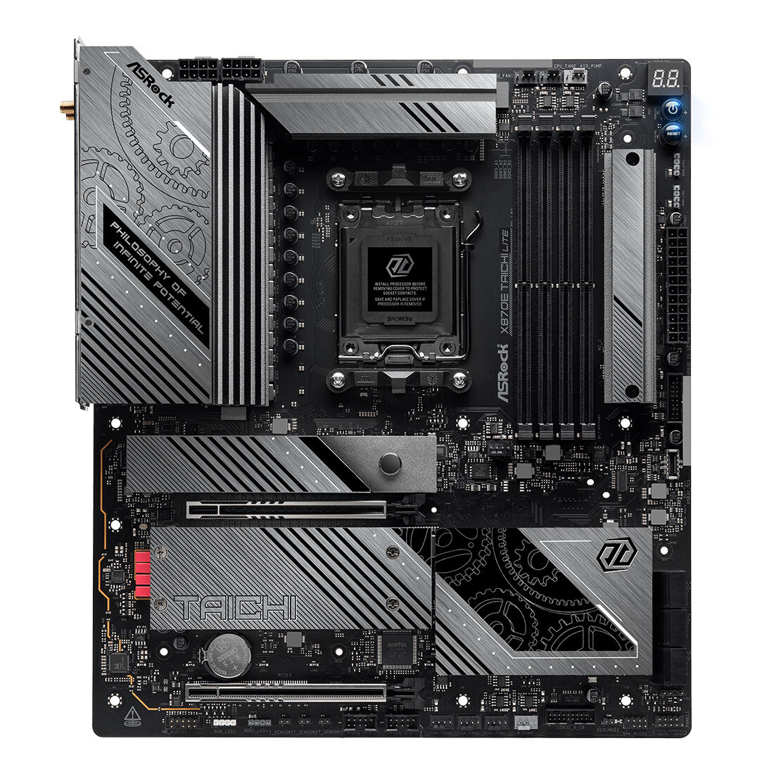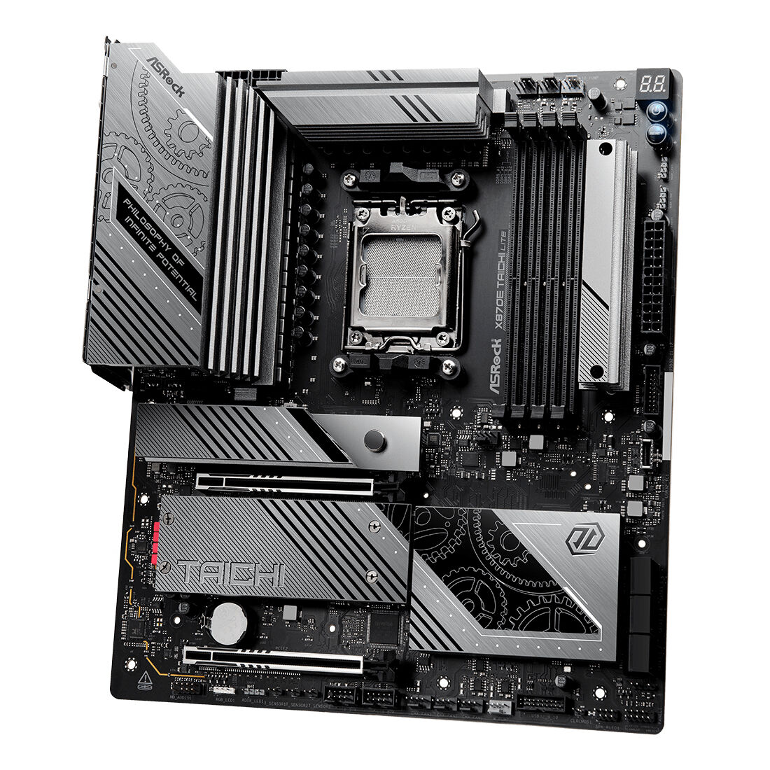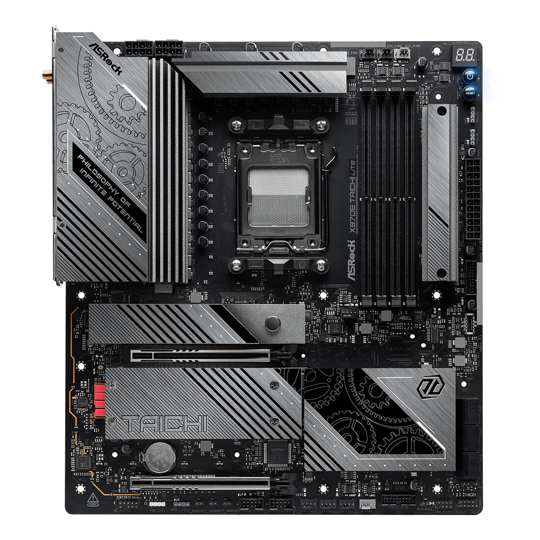 Asrock 90-MXBPA0-A0UAYZ. Produttore processore: AMD, Presa per processore: Socket AM5, Processori compatibili: AMD Ryzen 7000 Series, AMD Ryzen 8000 Series, AMD Ryzen 9000 Series. Tipi di memoria supportati: DDR5-SDRAM, RAM massima supportata: 256 GB, tipo di slot di memoria: DIMM. Interfacce dell’unità di archiviazione supportate: M.2, SATA III, Tipi di unità di archiviazione supportate: HDD & SSD, Livelli RAID: 0, 1. Tecnologia di processo parallela: CrossFire. Tipo di interfaccia Ethernet: 2.5 Gigabit Ethernet, Controller LAN: Dragon RTL8125BG, Wi-Fi standard: Wi-Fi 7 (802.11be)