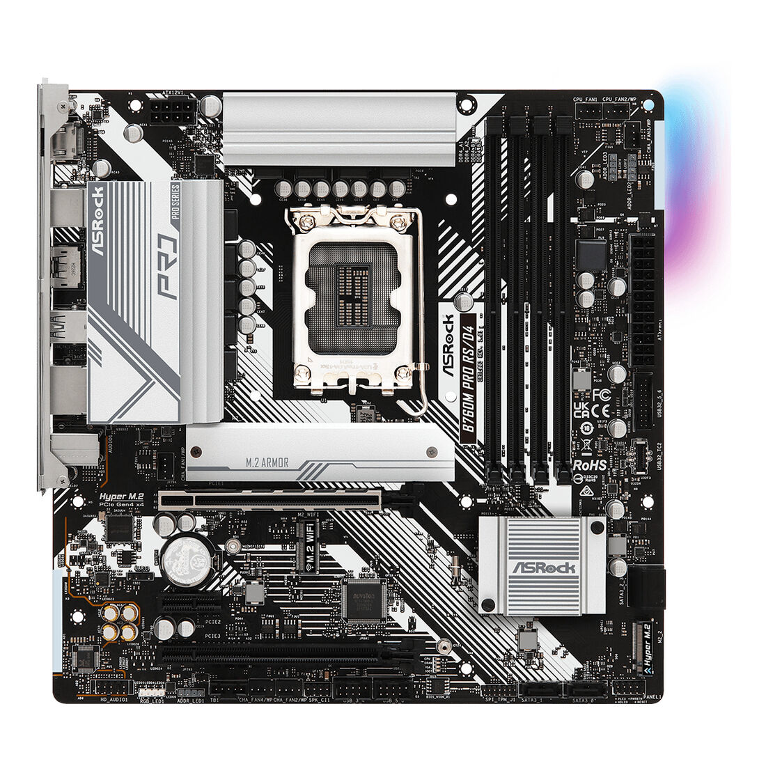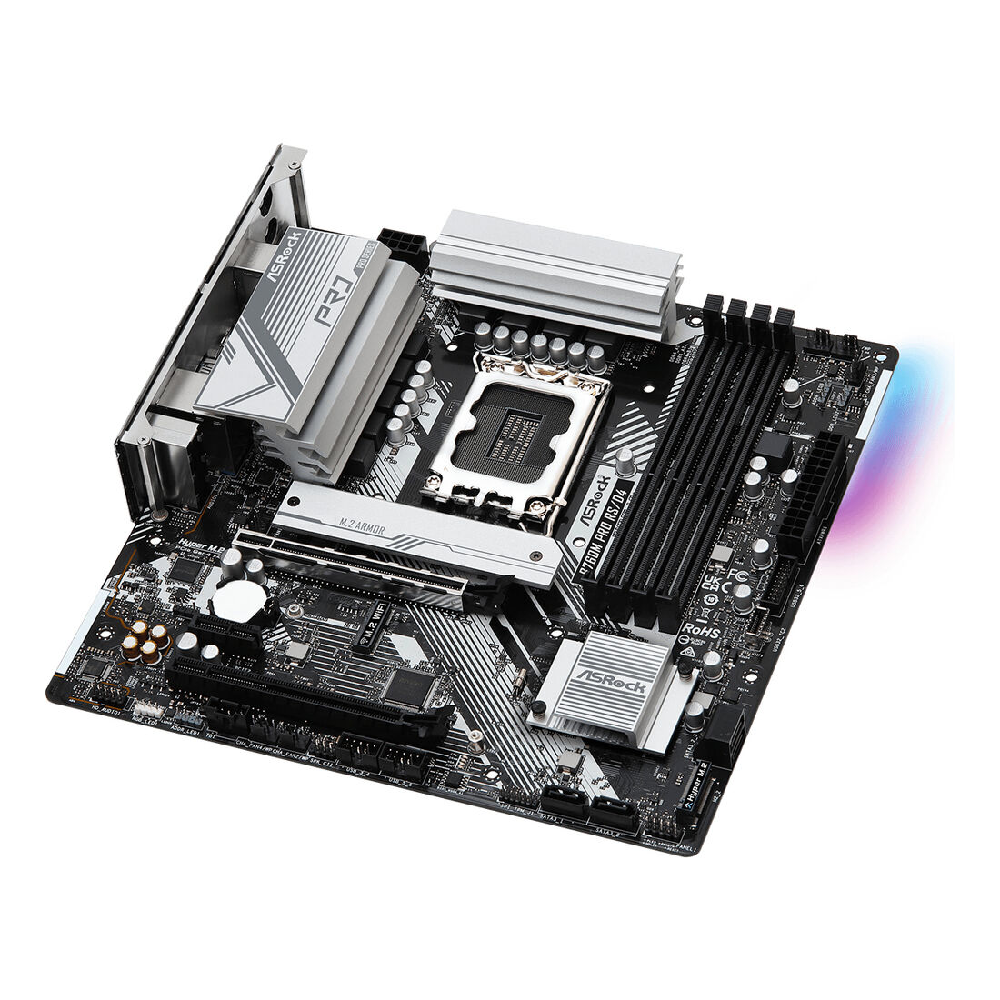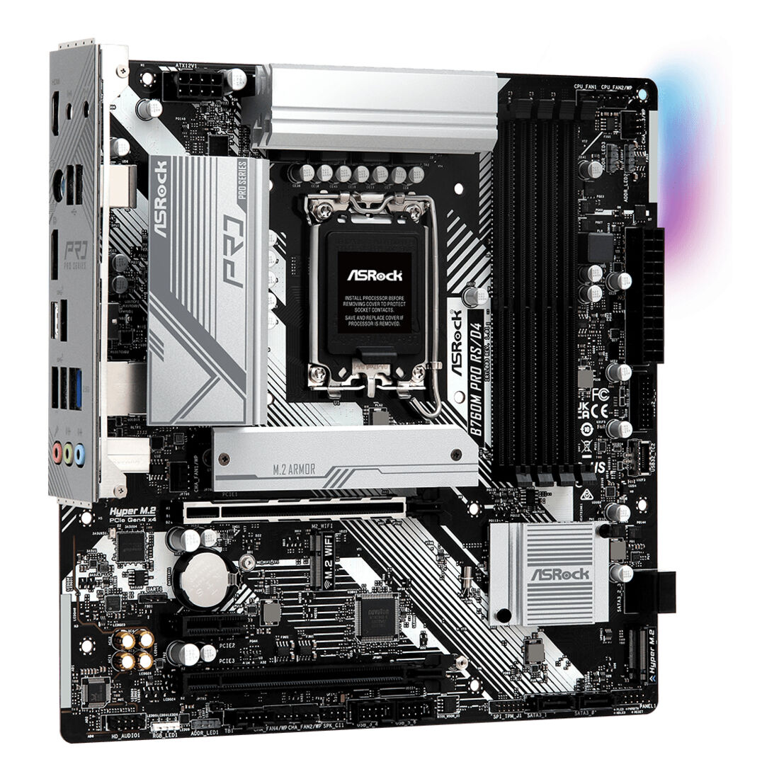 Asrock B760M PRO RS/D4. Produttore processore: Intel, Presa per processore: LGA 1700, Processori compatibili: Intel® Core™ i5, Intel® Core™ i7, Intel® Core™ i9. Tipi di memoria supportati: DDR4-SDRAM, RAM massima supportata: 128 GB, tipo di slot di memoria: DIMM. Interfacce dell’unità di archiviazione supportate: M.2, SATA III, Tipi di unità di archiviazione supportate: HDD & SSD, Livelli RAID: 0, 1, 5, 10. Tipo di interfaccia Ethernet: 2.5 Gigabit Ethernet, Controller LAN: Dragon RTL8125BG. Componente per: PC, Fattore di forma scheda madre: micro ATX, Famiglia di chipset per scheda madre: Intel