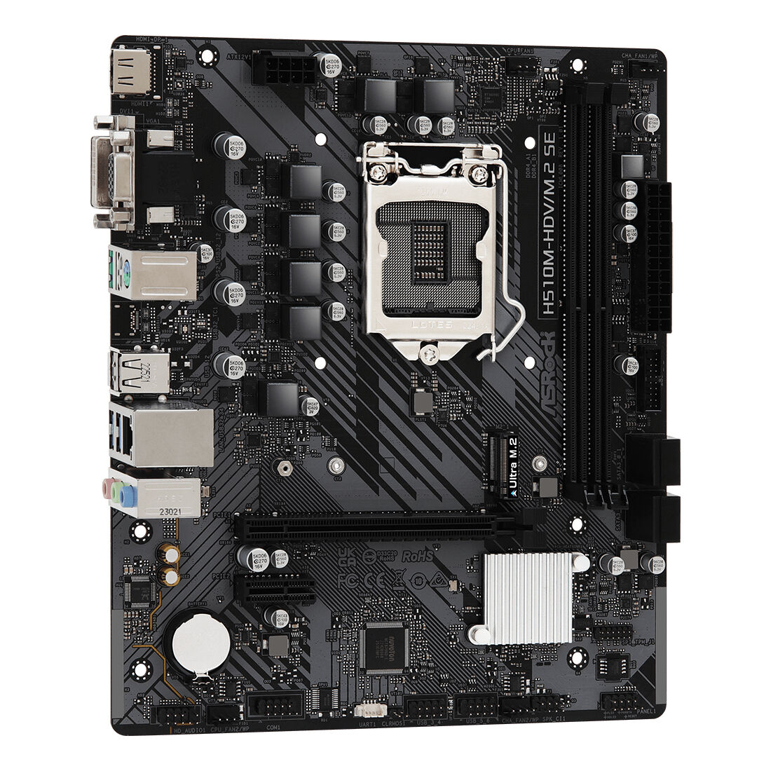 Asrock H510M-HDV/M.2 SE. Produttore processore: Intel, Presa per processore: LGA 1200 (Socket H5). Tipi di memoria supportati: DDR4-SDRAM, RAM massima supportata: 64 GB, tipo di slot di memoria: DIMM. Interfacce dell’unità di archiviazione supportate: PCI Express 3.0, SATA III, Tipi di unità di archiviazione supportate: HDD & SSD, Livelli RAID: 0, 1, 5, 10. Versione HDMI: 1.4/2.0, Connettore USB: USB tipo A. Tipo di interfaccia Ethernet: Gigabit Ethernet, Controller LAN: Realtek 8111H