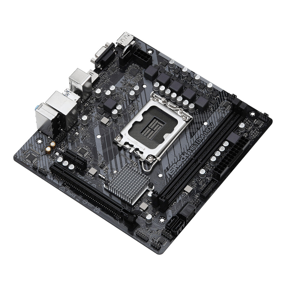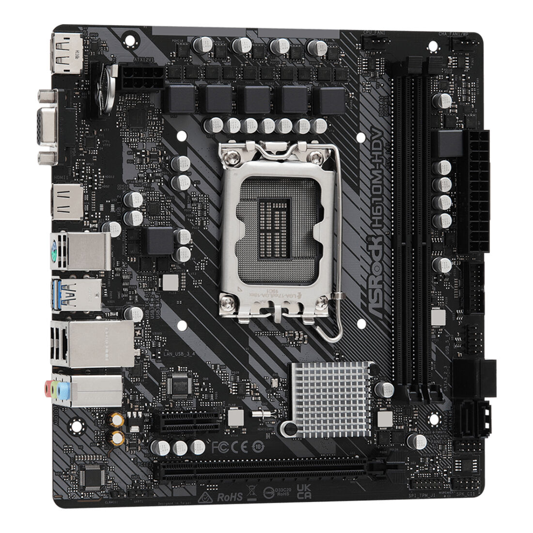 Asrock H610M-HDV. Produttore processore: Intel, Presa per processore: LGA 1700, Processori compatibili: Intel® Celeron®, Intel® Core™ i3, Intel® Core™ i5, Intel® Core™ i7, Intel® Core™ i9, Intel® Pentium®. Tipi di memoria supportati: DDR4-SDRAM, RAM massima supportata: 64 GB, tipo di slot di memoria: DIMM. Interfacce dell’unità di archiviazione supportate: SATA III, Tipi di unità di archiviazione supportate: HDD & SSD. Risoluzione massima: 7680 x 4320 Pixel. Tipo di interfaccia Ethernet: Gigabit Ethernet, Controller LAN: Realtek RTL8111H