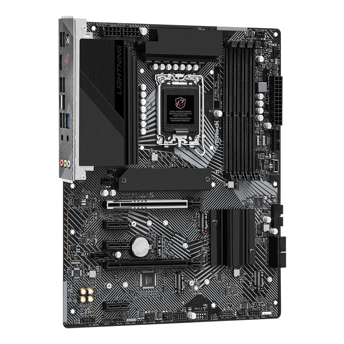 Asrock Z790 PG Lightning/D4. Produttore processore: Intel, Presa per processore: LGA 1700, Processori compatibili: Intel® Core™ i5, Intel® Core™ i7, Intel® Core™ i9. Tipi di memoria supportati: DDR4-SDRAM, RAM massima supportata: 128 GB, tipo di slot di memoria: DIMM. Interfacce dell’unità di archiviazione supportate: M.2, SATA III, Tipi di unità di archiviazione supportate: HDD & SSD, Livelli RAID: 0, 1, 5, 10. Tipo di interfaccia Ethernet: 2.5 Gigabit Ethernet, Controller LAN: Dragon RTL8125BG. Componente per: PC, Fattore di forma scheda madre: ATX, Famiglia di chipset per scheda madre: Intel