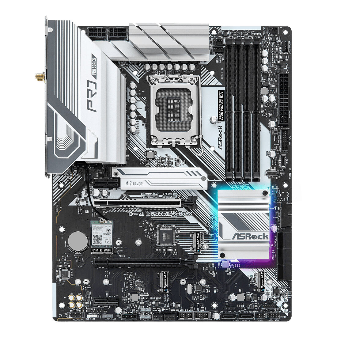 Asrock Z790 Pro RS WIFI. Produttore processore: Intel, Presa per processore: LGA 1700, Processori compatibili: Intel® Core™ i5, Intel® Core™ i7, Intel® Core™ i9. Tipi di memoria supportati: DDR5-SDRAM, RAM massima supportata: 128 GB, tipo di slot di memoria: DIMM. Interfacce dell’unità di archiviazione supportate: M.2, SATA III, Tipi di unità di archiviazione supportate: HDD & SSD, Livelli RAID: 0, 1, 5, 10. Tipo di interfaccia Ethernet: 2.5 Gigabit Ethernet, Controller LAN: Dragon RTL8125BG, Wi-Fi standard: Wi-Fi 6E (802.11ax). Componente per: PC, Fattore di forma scheda madre: ATX, Famiglia di chipset per scheda madre: Intel