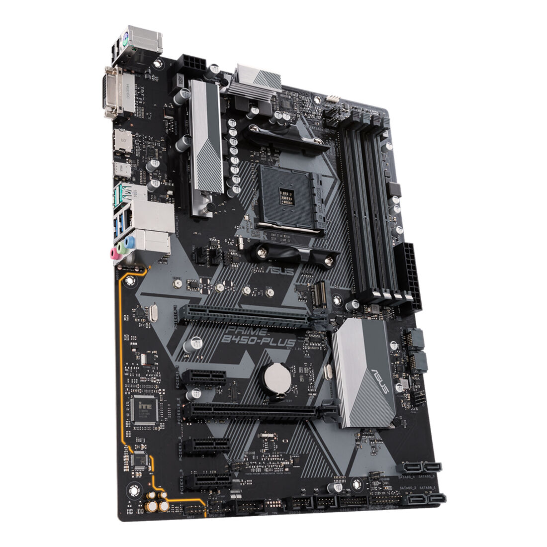 ASUS PRIME B450-PLUS. Produttore processore: AMD, Presa per processore: Socket AM4, Processori compatibili: AMD Athlon, AMD Ryzen 2000 Series, AMD Ryzen 3000 Series. Tipi di memoria supportati: DDR4-SDRAM, RAM massima supportata: 64 GB, tipo di slot di memoria: DIMM. Tecnologia di processo parallela: CrossFireX, Risoluzione massima: 4096 x 2160 Pixel. Versione HDMI: 2.0b. Tipo di interfaccia Ethernet: Gigabit Ethernet, Controller LAN: Realtek RTL8111H