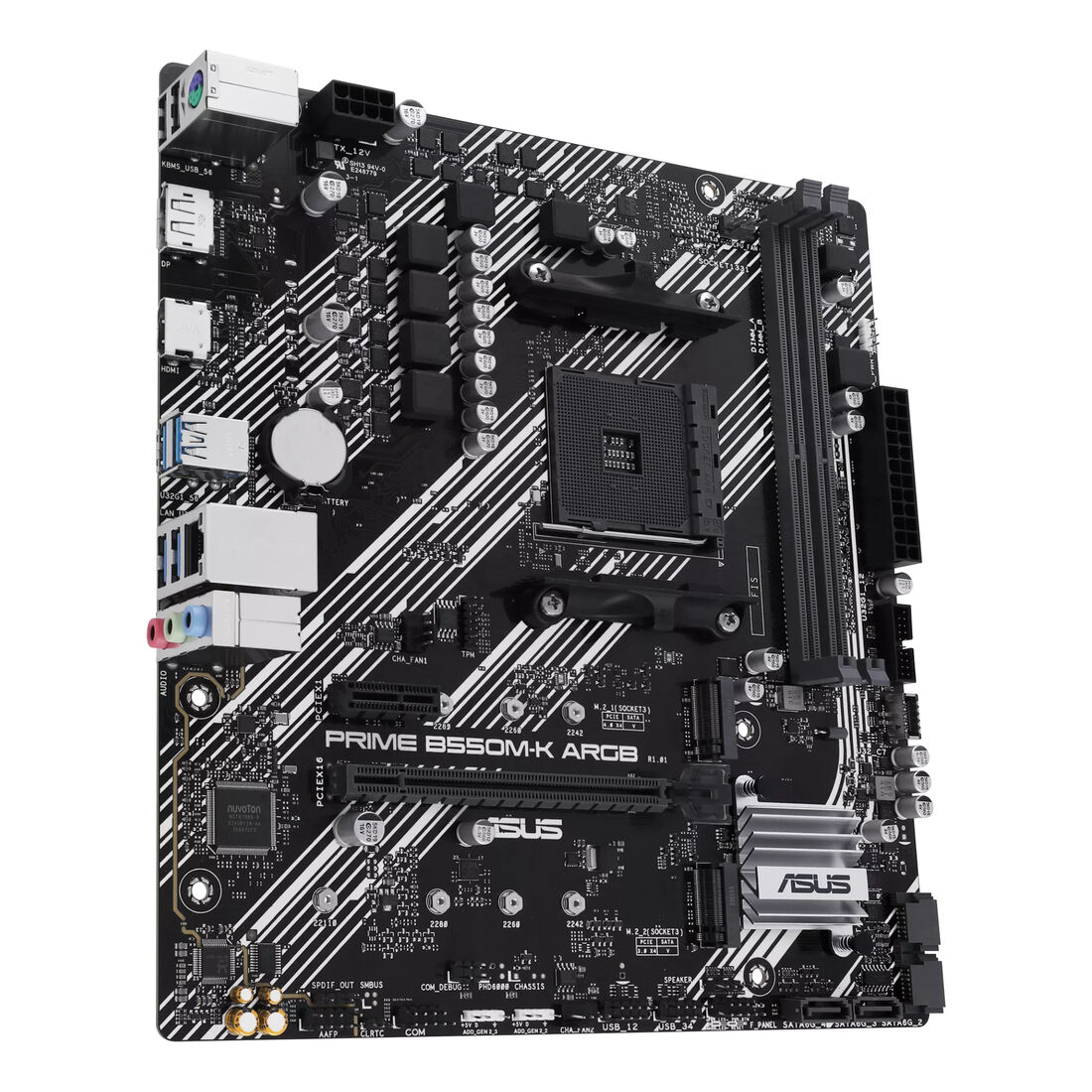 ASUS PRIME B550M-K ARGB. Produttore processore: AMD, Presa per processore: Socket AM4. Tipi di memoria supportati: DDR4-SDRAM, RAM massima supportata: 64 GB, tipo di slot di memoria: DIMM. Interfacce dell’unità di archiviazione supportate: M.2, Tipi di unità di archiviazione supportate: HDD & SSD, Livelli RAID: 0, 1, 10. Tipo di interfaccia Ethernet: Gigabit Ethernet. Componente per: PC, Fattore di forma scheda madre: micro ATX, Famiglia di chipset per scheda madre: AMD