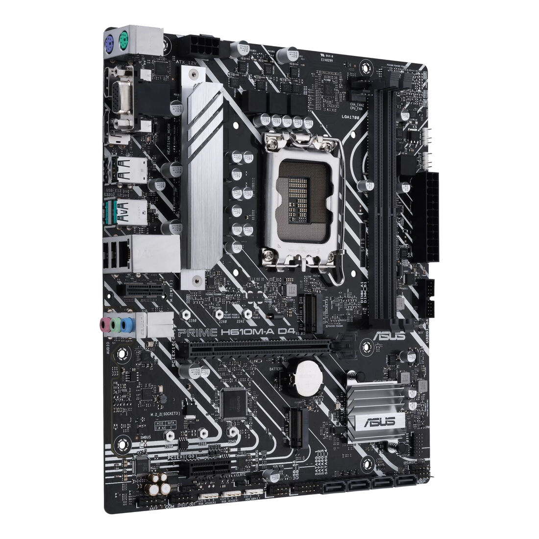 ASUS PRIME H610M-A D4-CSM. Produttore processore: Intel, Presa per processore: LGA 1700, Processori compatibili: Intel® Celeron®, Intel® Core™ i3, Intel® Core™ i5, Intel® Core™ i7, Intel® Core™ i9, Intel® Pentium®. Tipi di memoria supportati: DDR4-SDRAM, LPDDR3-SDRAM, RAM massima supportata: 64 GB, tipo di slot di memoria: DIMM. Interfacce dell’unità di archiviazione supportate: M.2, SATA III, Tipi di unità di archiviazione supportate: HDD & SSD. Tipo di interfaccia Ethernet: Gigabit Ethernet. Componente per: PC, Fattore di forma scheda madre: micro ATX, Famiglia di chipset per scheda madre: Intel