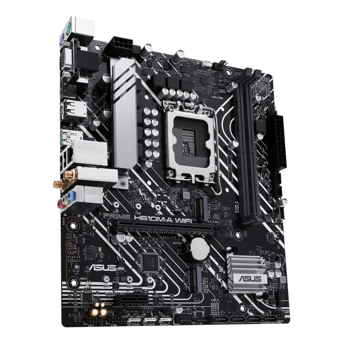 ASUS PRIME H610M-A WIFI. Produttore processore: Intel, Presa per processore: LGA 1700, Processori compatibili: Intel® Celeron®, Intel® Pentium® Gold, Intel® Core™ i3, Intel® Core™ i5, Intel® Core™…. Tipi di memoria supportati: DDR5-SDRAM, RAM massima supportata: 96 GB, tipo di slot di memoria: DIMM. Interfacce dell’unità di archiviazione supportate: M.2, SATA III, Tipi di unità di archiviazione supportate: HDD & SSD. Tipo di interfaccia Ethernet: Gigabit Ethernet, Wi-Fi standard: Wi-Fi 5 (802.11ac), Standard Wi-Fi: 802.11a, 802.11b, 802.11g, Wi-Fi 4 (802.11n), Wi-Fi 5 (802.11ac). Componente per: PC, Fattore di forma scheda madre: micro ATX, Famiglia di chipset per scheda madre: Intel