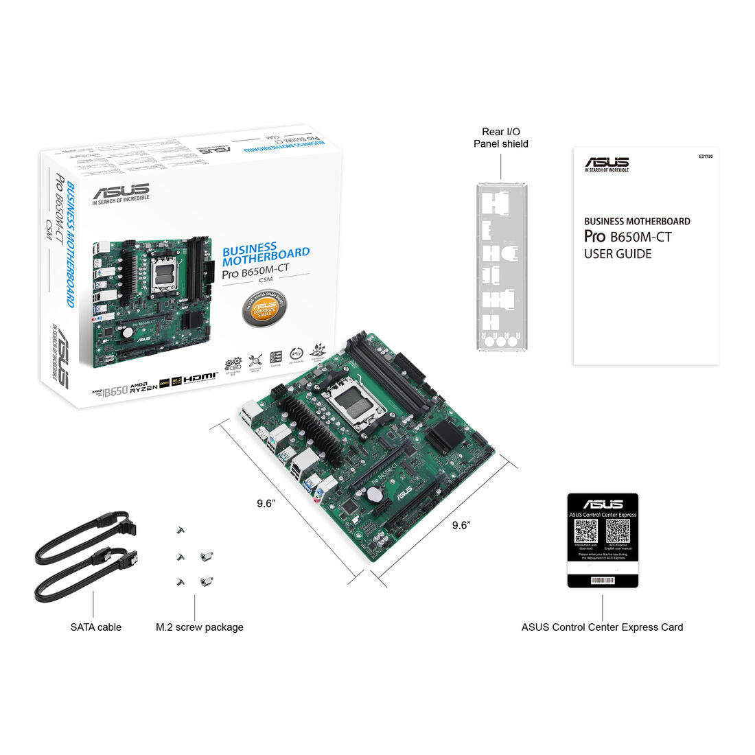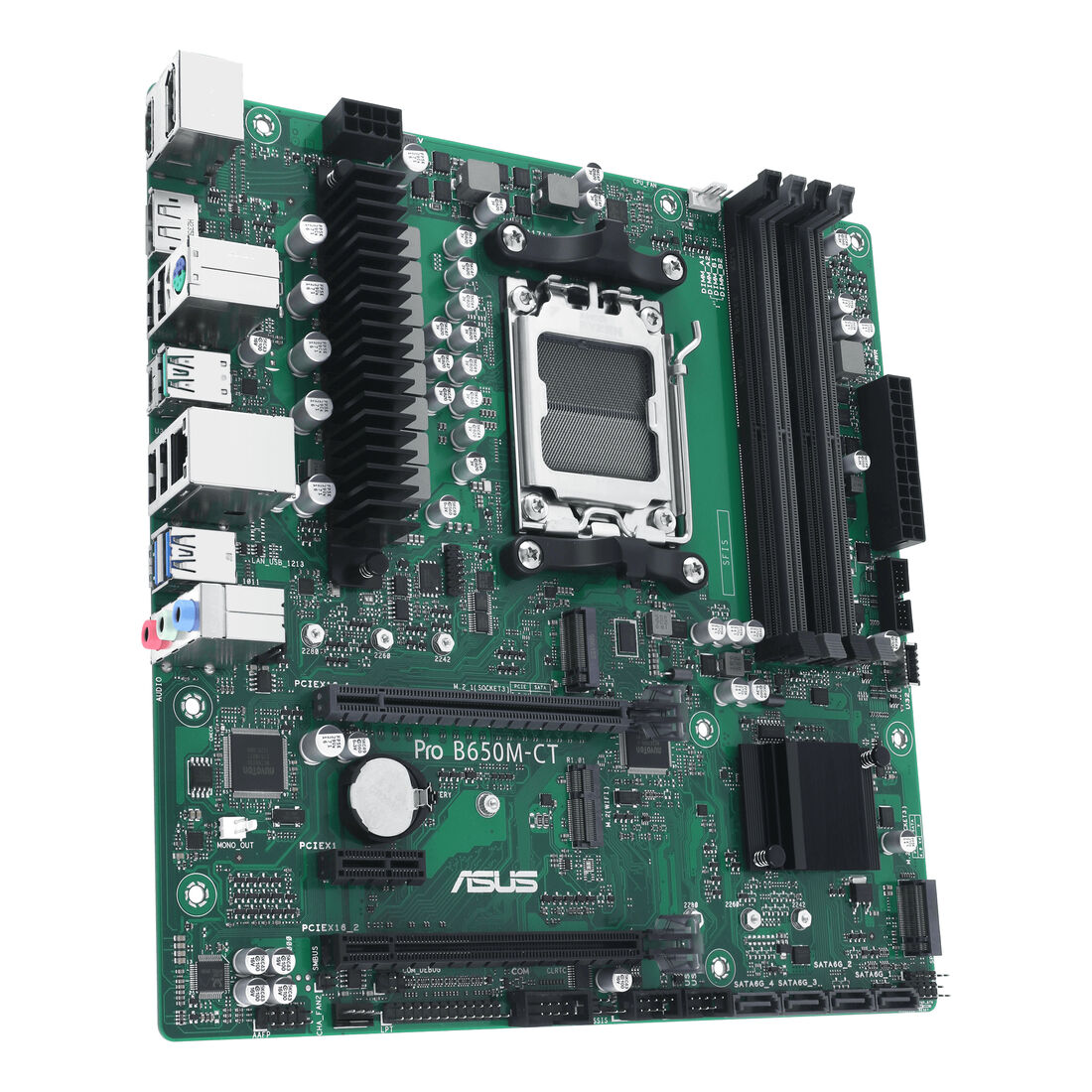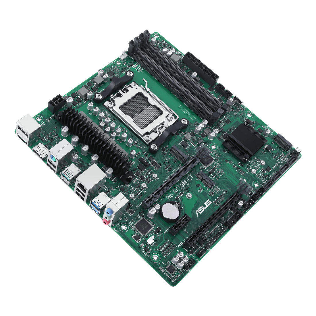 ASUS PRO B650M-CT-CSM. Produttore processore: AMD, Presa per processore: Socket AM5, Processori compatibili: AMD Ryzen 7000 Series. Tipi di memoria supportati: DDR5-SDRAM, RAM massima supportata: 128 GB, tipo di slot di memoria: DIMM. Interfacce dell’unità di archiviazione supportate: M.2, SATA III, Tipi di unità di archiviazione supportate: HDD & SSD, Livelli RAID: 0, 1, 10. Tipo di interfaccia Ethernet: Gigabit Ethernet. Componente per: PC, Fattore di forma scheda madre: micro ATX, Famiglia di chipset per scheda madre: AMD