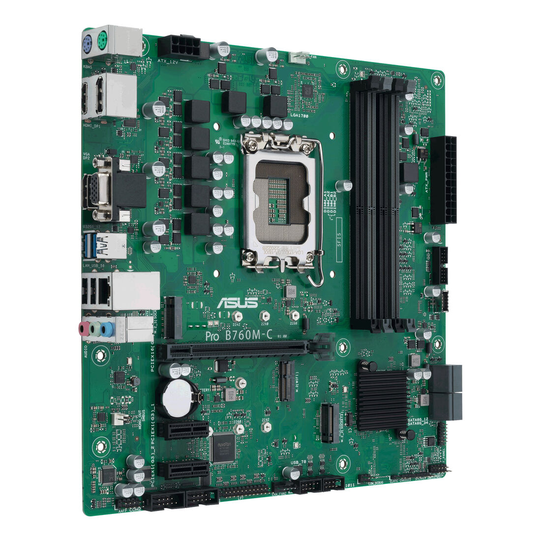 ASUS PRO B760M-C-CSM. Produttore processore: Intel, Presa per processore: LGA 1700, Processori compatibili: Intel® Celeron®, Intel® Core™ i3, Intel® Core™ i5, Intel® Core™ i7, Intel® Core™ i9,…. Tipi di memoria supportati: DDR5-SDRAM, RAM massima supportata: 128 GB, tipo di slot di memoria: DIMM. Interfacce dell’unità di archiviazione supportate: M.2, SATA III, Tipi di unità di archiviazione supportate: HDD & SSD, Livelli RAID: 0, 1, 5, 10. Tipo di interfaccia Ethernet: Gigabit Ethernet. Componente per: PC, Fattore di forma scheda madre: micro ATX, Famiglia di chipset per scheda madre: Intel