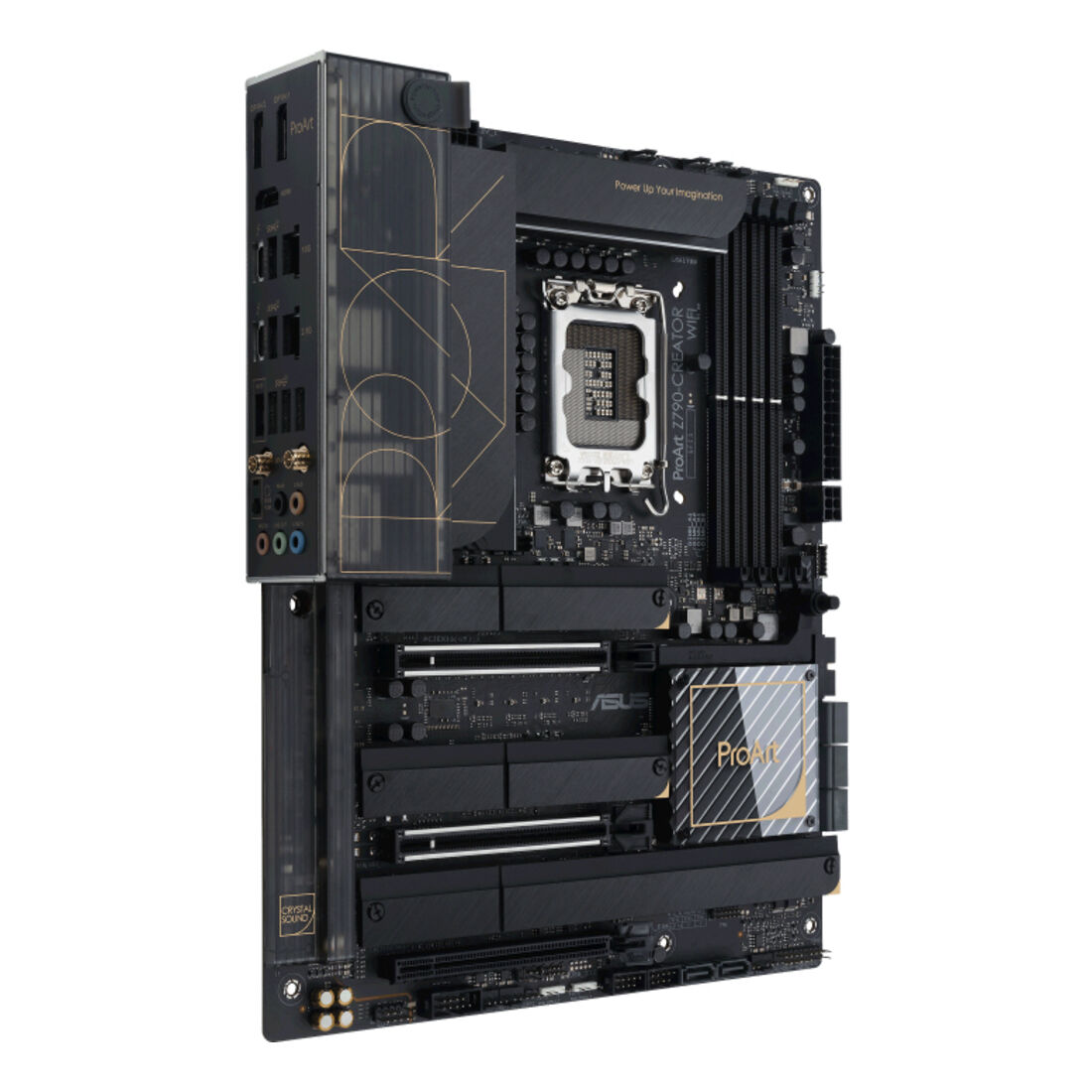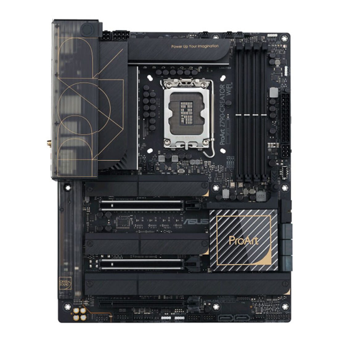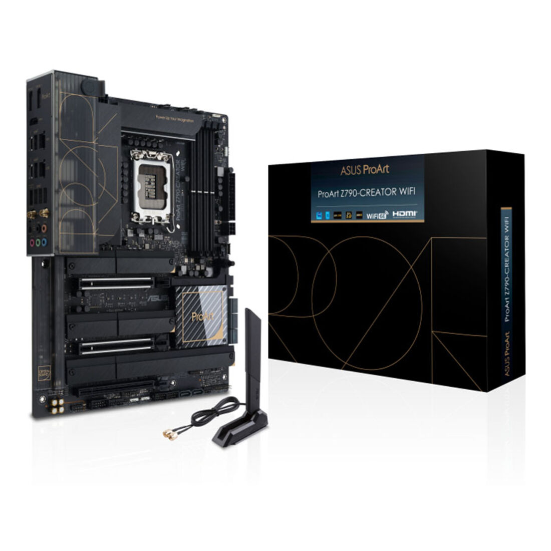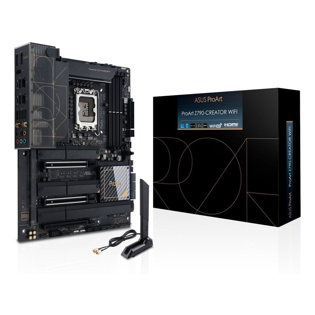 ASUS PROART Z790-CREATOR WIFI. Produttore processore: AMD, Presa per processore: LGA 1700, Processori compatibili: Intel® Celeron®, Intel® Core™ i3, Intel® Core™ i5, Intel® Core™ i7, Intel® Core™ i9,…. Tipi di memoria supportati: DDR5-SDRAM, RAM massima supportata: 128 GB, tipo di slot di memoria: DIMM. Interfacce dell’unità di archiviazione supportate: M.2, SATA III, Tipi di unità di archiviazione supportate: HDD & SSD, Livelli RAID: 0, 1, 5, 10. Tipo di interfaccia Ethernet: 2.5 Gigabit Ethernet, 10 Gigabit Ethernet, Wi-Fi standard: Wi-Fi 6E (802.11ax), Standard Wi-Fi: 802.11a, 802.11b, 802.11g, Wi-Fi 4 (802.11n), Wi-Fi 5 (802.11ac), Wi-Fi 6 (802.11ax), Wi-Fi 6E…. Componente per: PC, Fattore di forma scheda madre: ATX, Famiglia di chipset per scheda madre: Intel