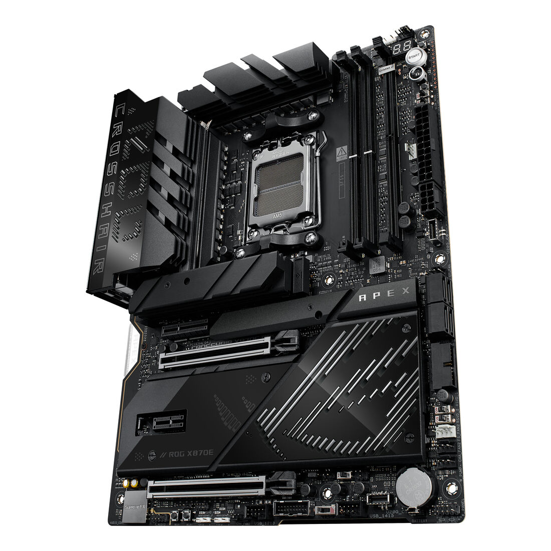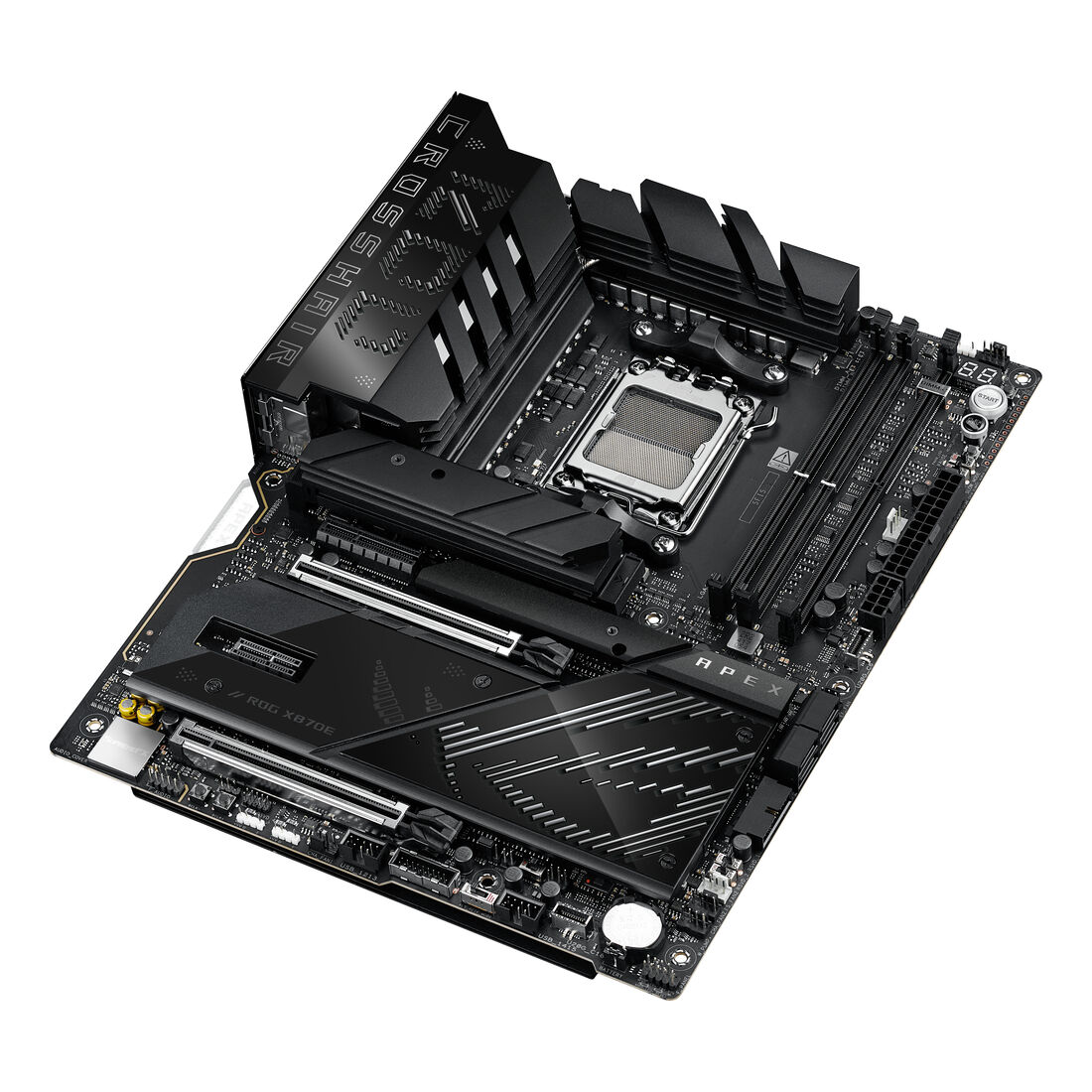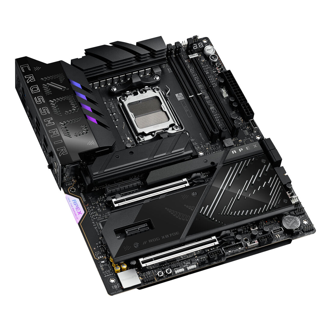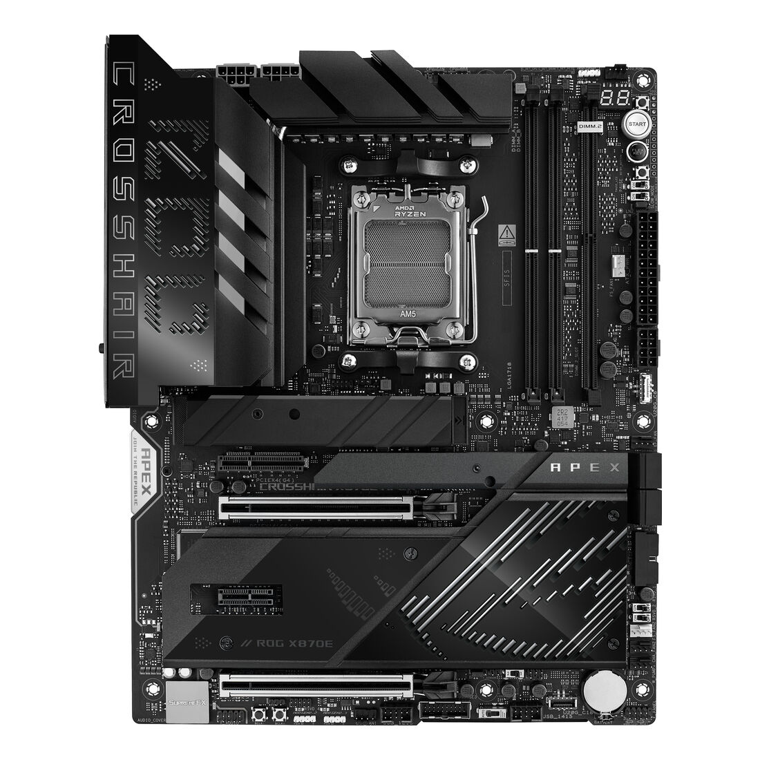ASUS ROG CROSSHAIR X870E APEX. Produttore processore: AMD, Presa per processore: Socket AM5, Processori compatibili: AMD Ryzen 7000 Series, AMD Ryzen 8000 Series, AMD Ryzen 9000 Series. Tipi di memoria supportati: DDR5-SDRAM, RAM massima supportata: 128 GB, tipo di slot di memoria: DIMM. Interfacce dell’unità di archiviazione supportate: M.2, SATA III, Tipi di unità di archiviazione supportate: HDD & SSD, Livelli RAID: 0, 1, 5, 10. Tipo di interfaccia Ethernet: 5 Gigabit Ethernet, Wi-Fi standard: Wi-Fi 7 (802.11be), Standard Wi-Fi: Wi-Fi 7 (802.11be). Componente per: PC, Fattore di forma scheda madre: ATX, Famiglia di chipset per scheda madre: AMD