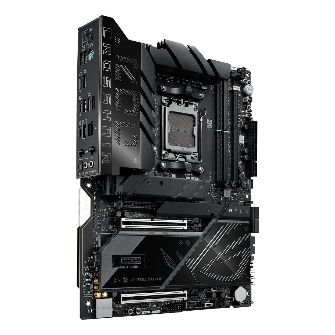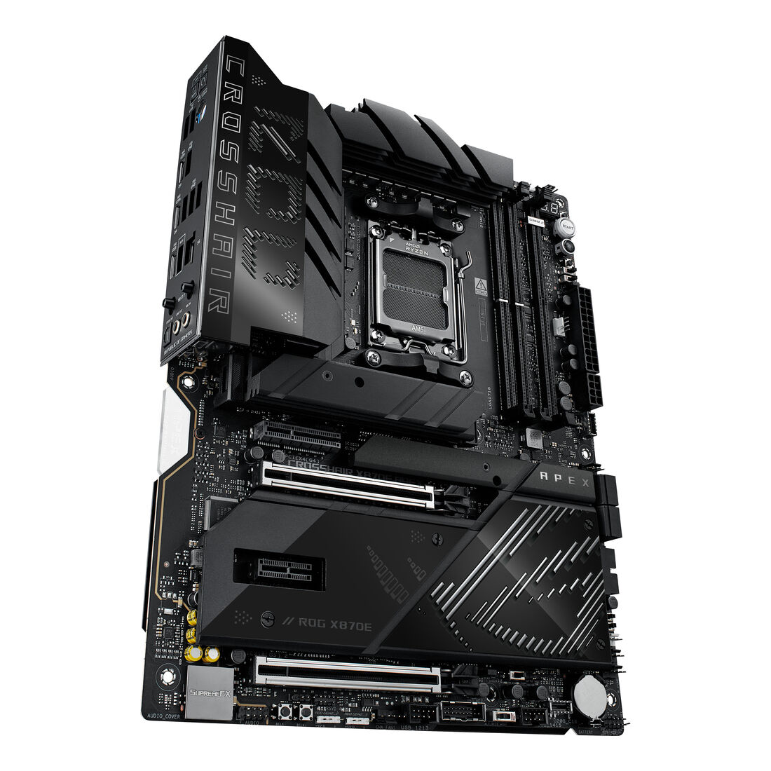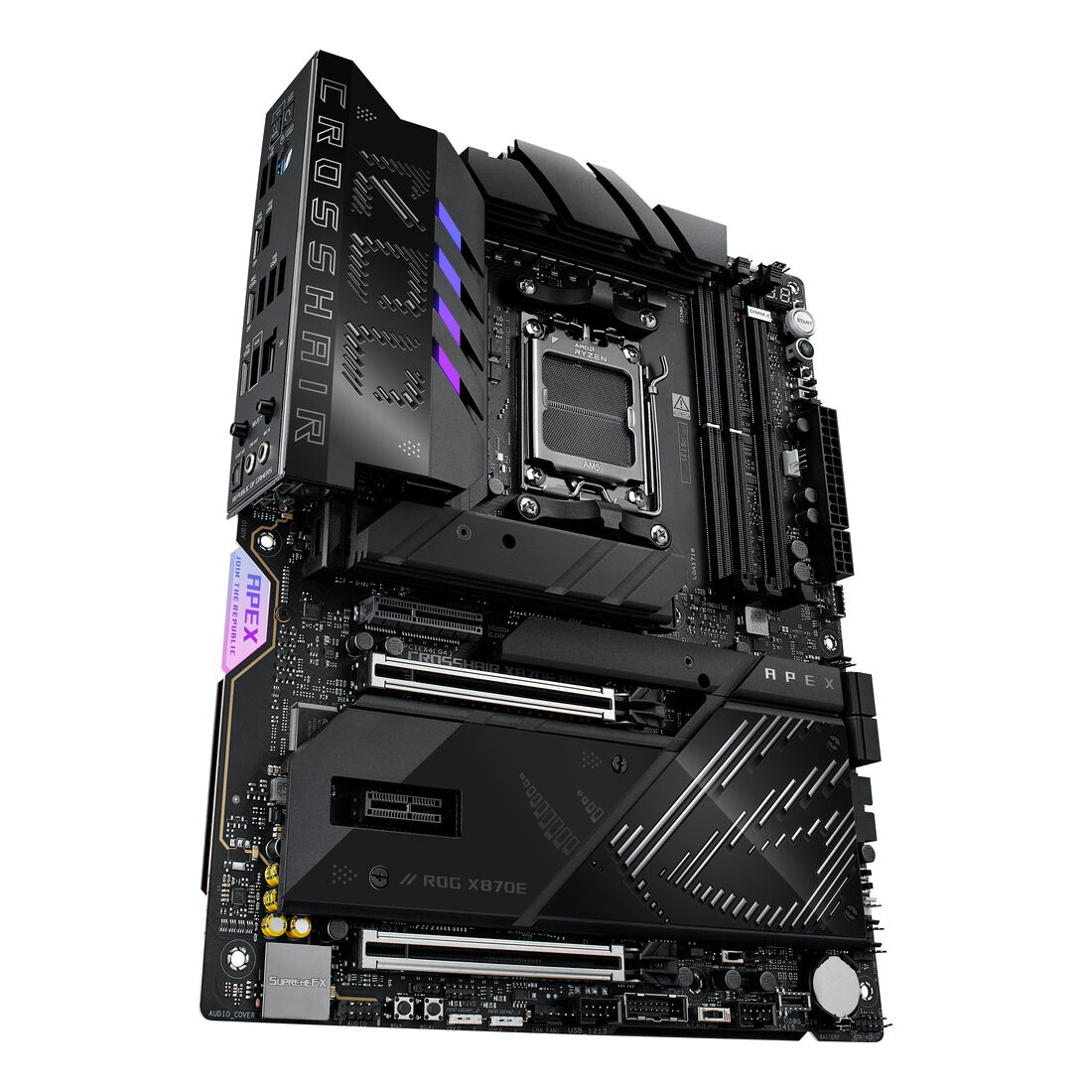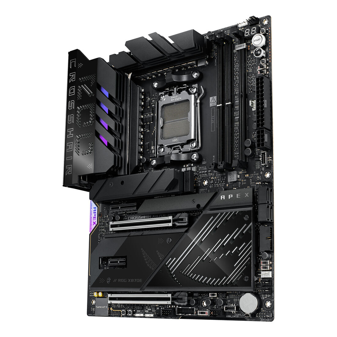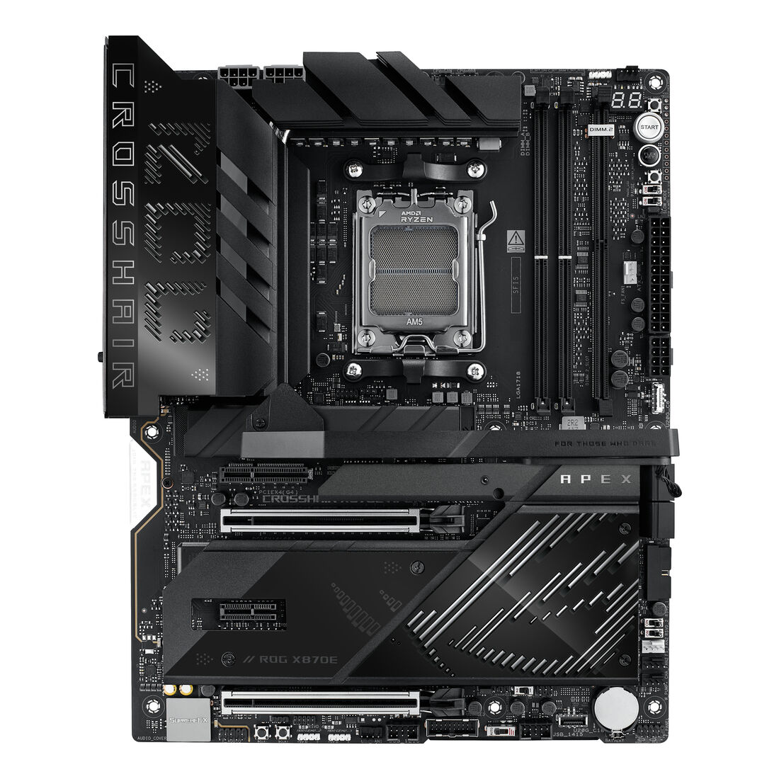 ASUS ROG CROSSHAIR X870E APEX. Produttore processore: AMD, Presa per processore: Socket AM5, Processori compatibili: AMD Ryzen 7000 Series, AMD Ryzen 8000 Series, AMD Ryzen 9000 Series. Tipi di memoria supportati: DDR5-SDRAM, RAM massima supportata: 128 GB, tipo di slot di memoria: DIMM. Interfacce dell’unità di archiviazione supportate: M.2, SATA III, Tipi di unità di archiviazione supportate: HDD & SSD, Livelli RAID: 0, 1, 5, 10. Tipo di interfaccia Ethernet: 5 Gigabit Ethernet, Wi-Fi standard: Wi-Fi 7 (802.11be), Standard Wi-Fi: Wi-Fi 7 (802.11be). Componente per: PC, Fattore di forma scheda madre: ATX, Famiglia di chipset per scheda madre: AMD