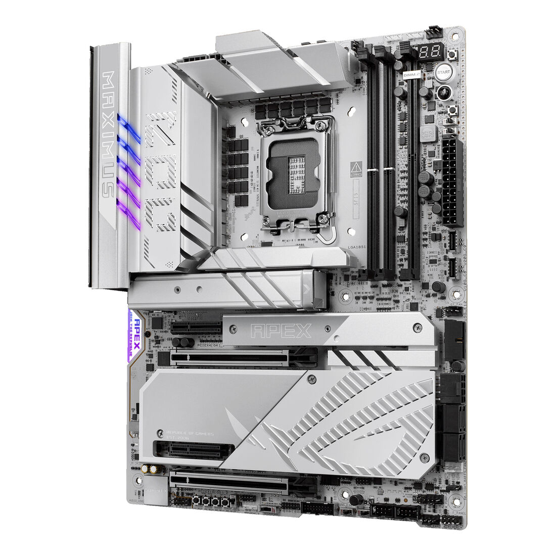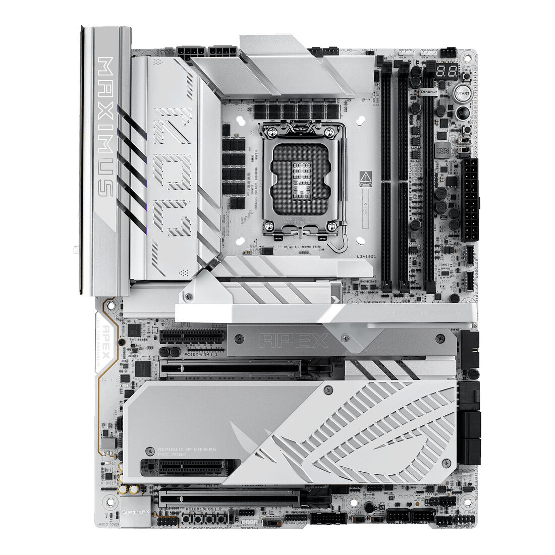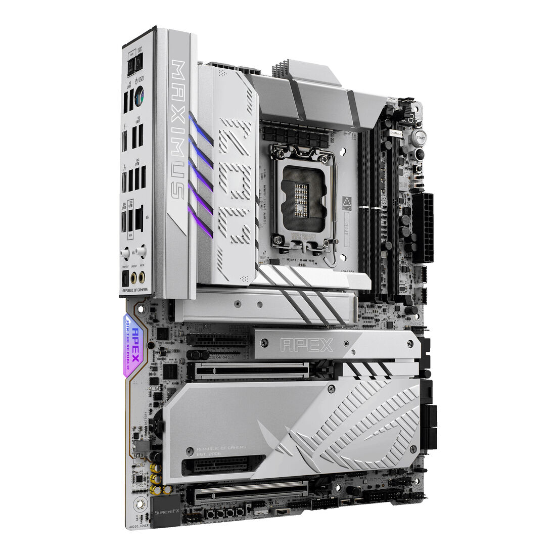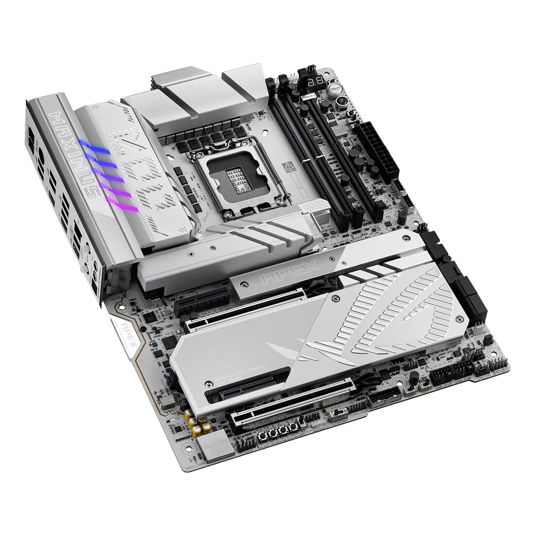 ASUS ROG MAXIMUS Z890 APEX. Produttore processore: Intel, Presa per processore: LGA 1851 (Socket V1), Processori compatibili: Intel Core Ultra (Series 2). Tipi di memoria supportati: DDR5-SDRAM, RAM massima supportata: 96 GB, tipo di slot di memoria: DIMM. Interfacce dell’unità di archiviazione supportate: M.2, SATA III, Tipi di unità di archiviazione supportate: HDD & SSD, Livelli RAID: 0, 1, 5, 10. Tipo di interfaccia Ethernet: 5 Gigabit Ethernet, Wi-Fi standard: Wi-Fi 7 (802.11be), Standard Wi-Fi: Wi-Fi 7 (802.11be). Componente per: PC, Fattore di forma scheda madre: ATX, Famiglia di chipset per scheda madre: Intel