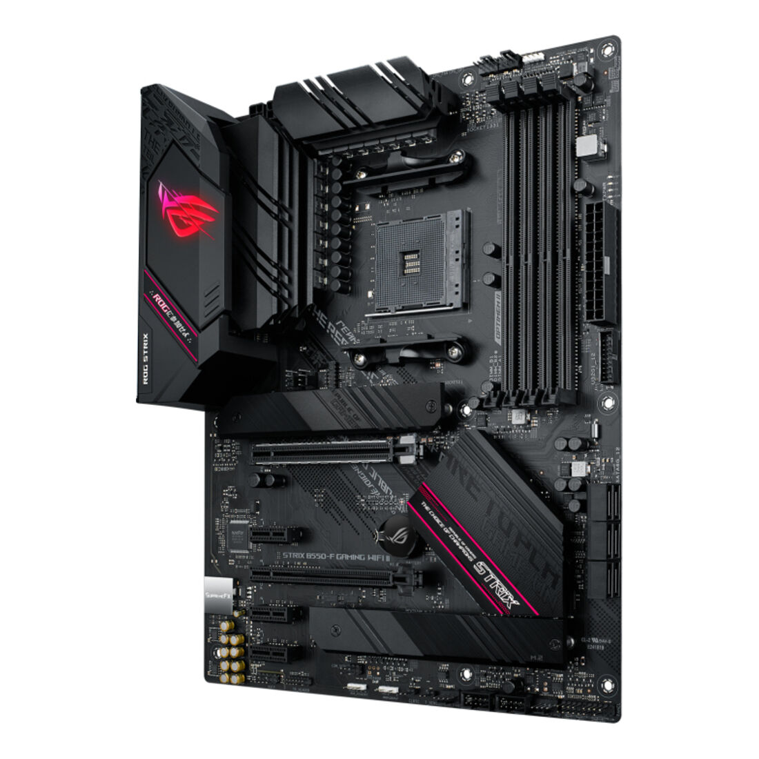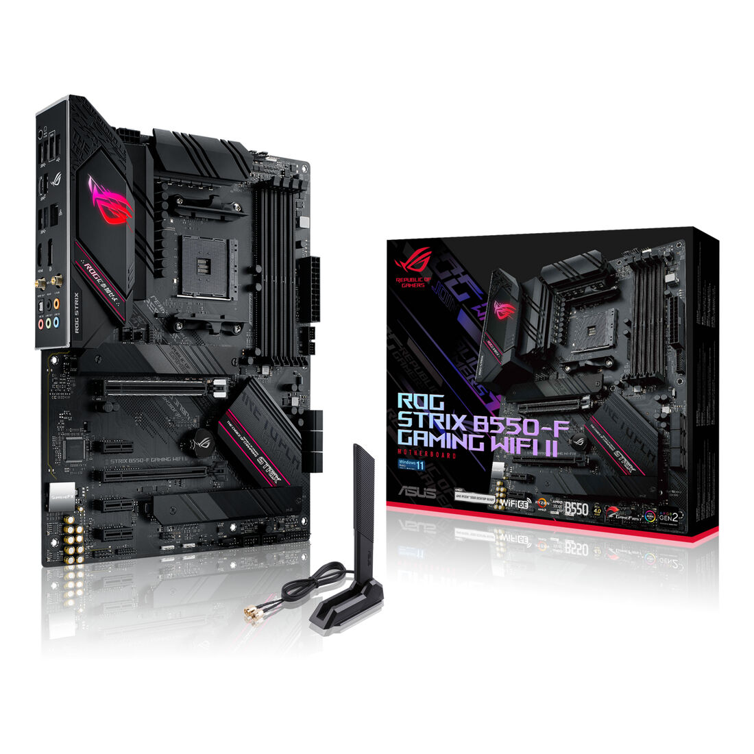 ASUS ROG STRIX B550-F GAMING WIFI II. Produttore processore: AMD, Presa per processore: Socket AM4, Processori compatibili: AMD Ryzen 3000 Series. Tipi di memoria supportati: DDR4-SDRAM, RAM massima supportata: 128 GB, tipo di slot di memoria: DIMM. Interfacce dell’unità di archiviazione supportate: M.2, SATA III, Tipi di unità di archiviazione supportate: HDD & SSD, Livelli RAID: 0, 1, 10. Tipo di interfaccia Ethernet: 2.5 Gigabit Ethernet, Controller LAN: Intel I225-V, Wi-Fi standard: Wi-Fi 6 (802.11ax). Componente per: PC, Fattore di forma scheda madre: ATX, Famiglia di chipset per scheda madre: AMD
