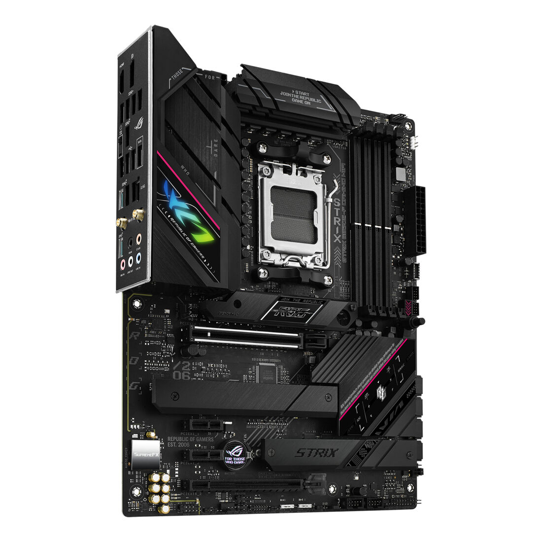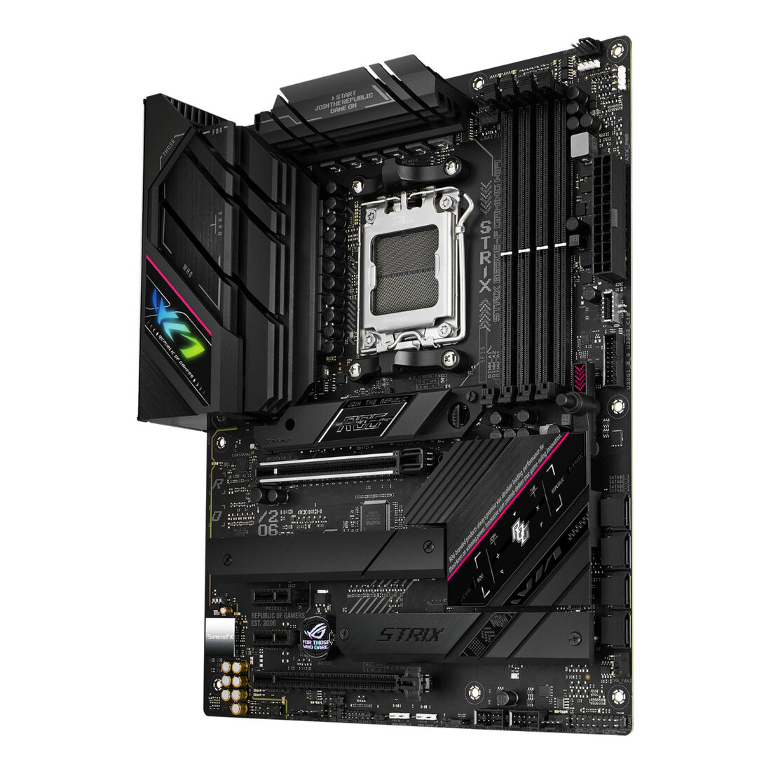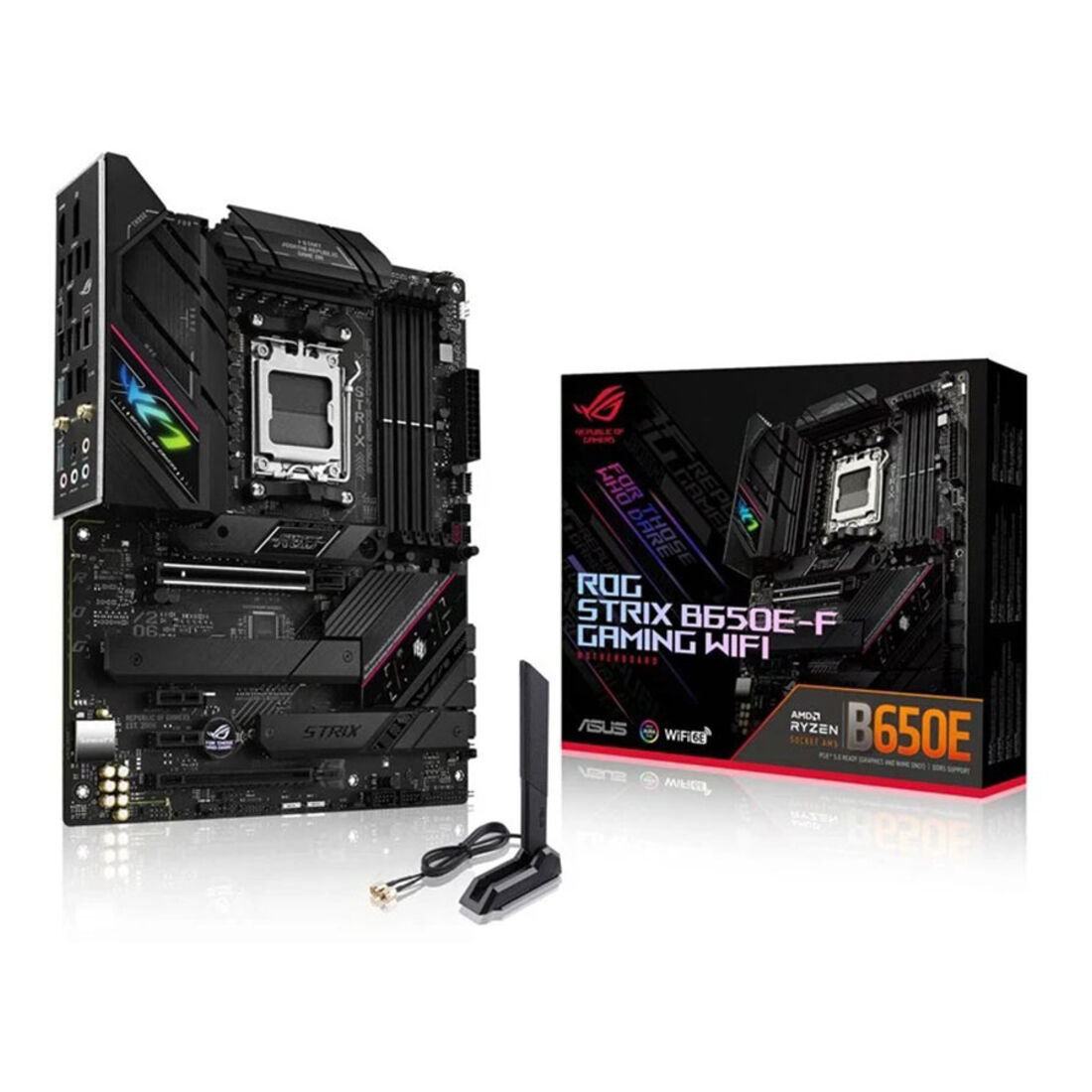 ASUS ROG STRIX B650E-F GAMING WIFI. Produttore processore: AMD, Presa per processore: Socket AM5, Processori compatibili: AMD Ryzen™ 7. Tipi di memoria supportati: DDR5-SDRAM, RAM massima supportata: 128 GB, tipo di slot di memoria: DIMM. Interfacce dell’unità di archiviazione supportate: M.2, SATA III, Tipi di unità di archiviazione supportate: HDD & SSD, Livelli RAID: 0, 1, 10. Tipo di interfaccia Ethernet: 2.5 Gigabit Ethernet, Controller LAN: Intel I225-V, Wi-Fi standard: Wi-Fi 6E (802.11ax). Componente per: PC, Fattore di forma scheda madre: ATX, Famiglia di chipset per scheda madre: AMD