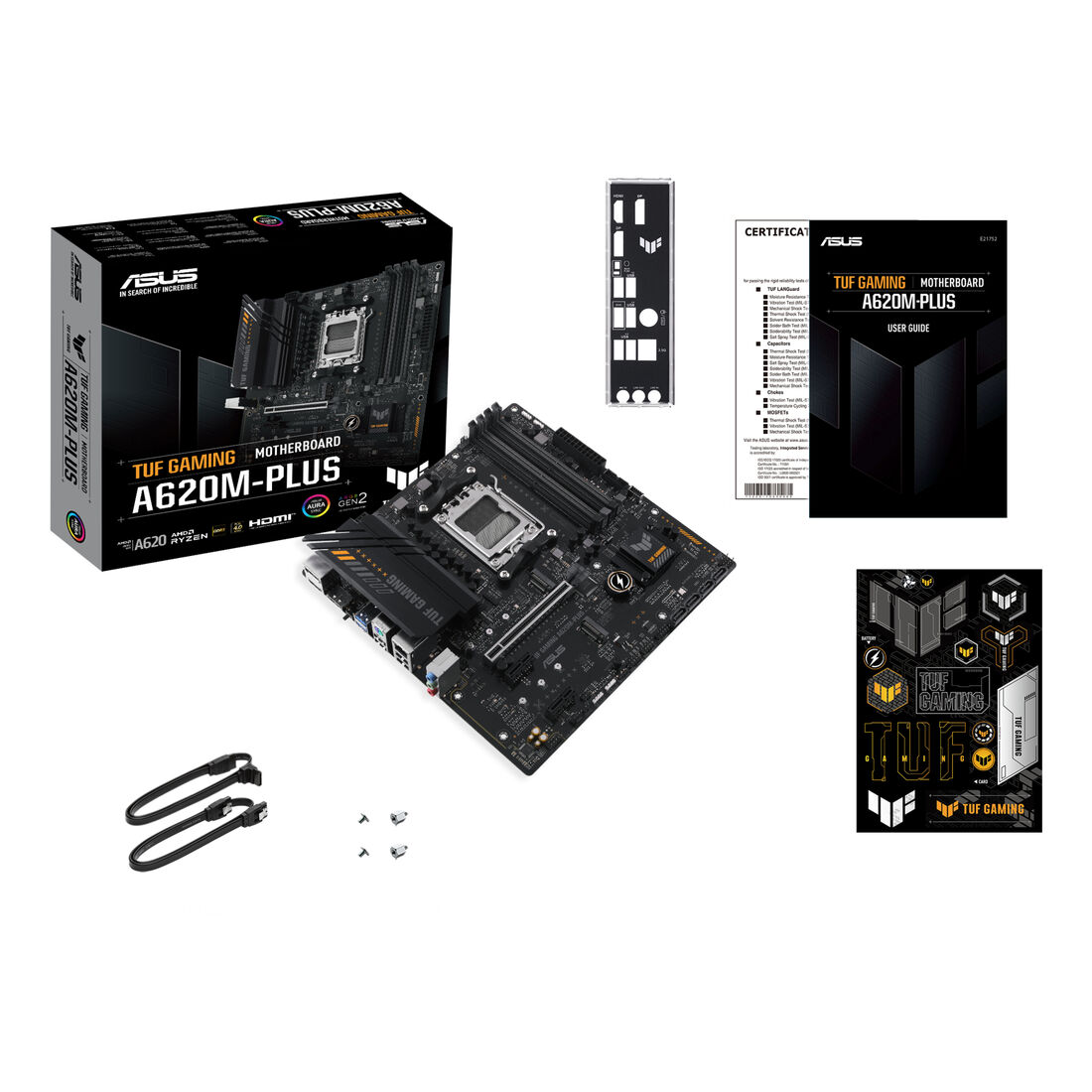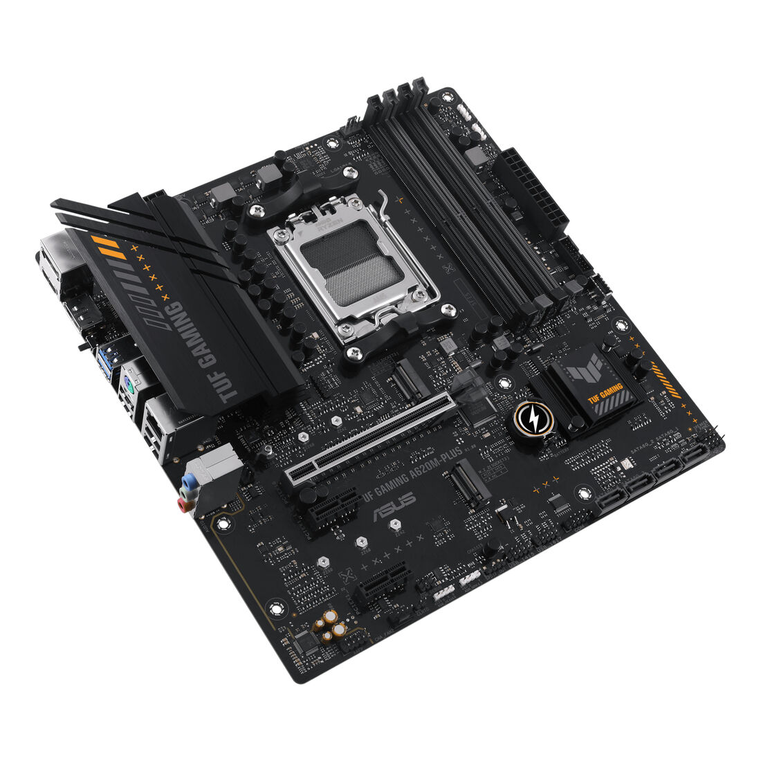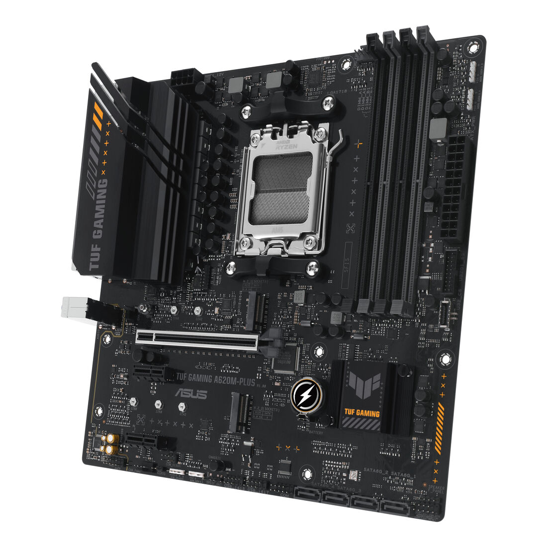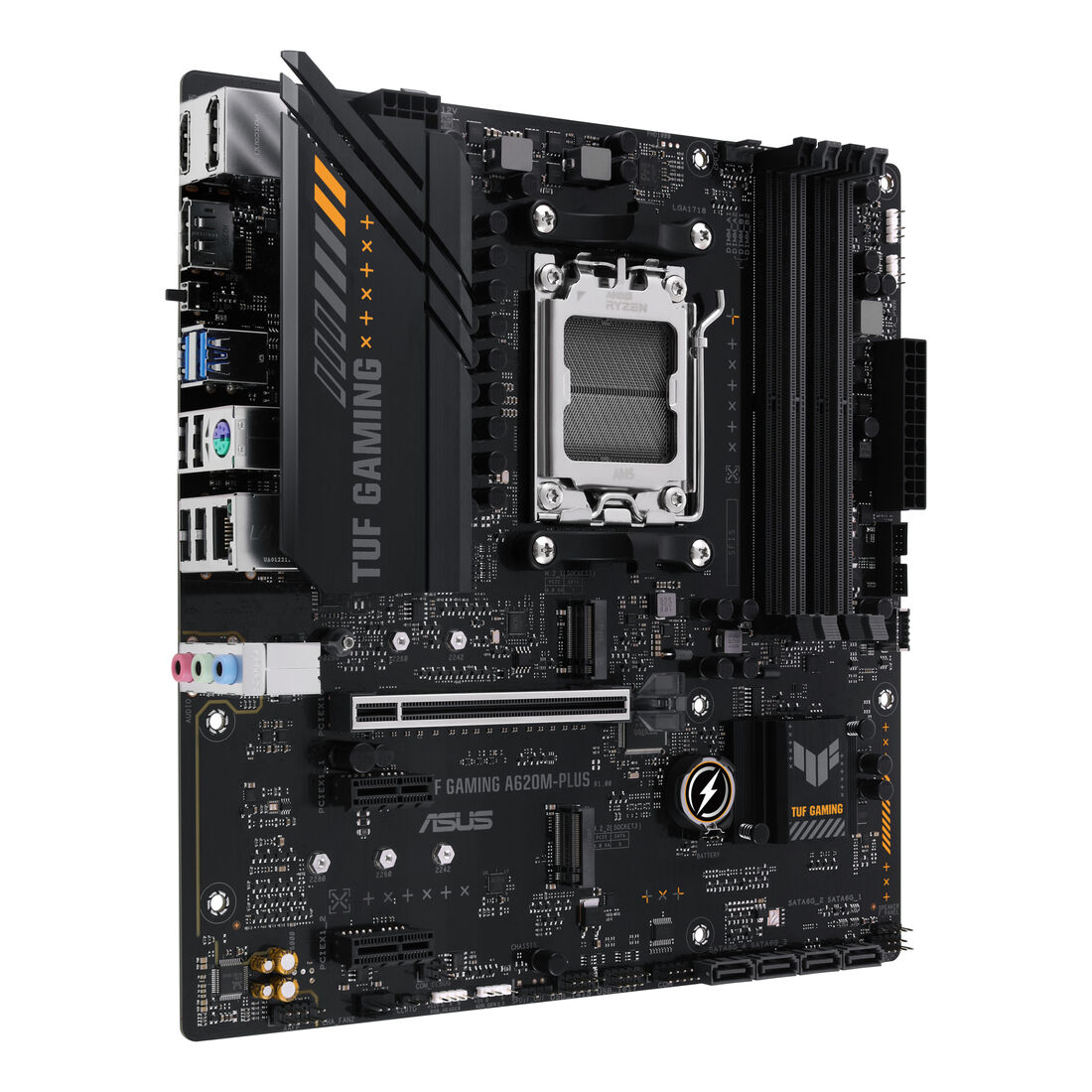 ASUS TUF GAMING A620M-PLUS. Produttore processore: AMD, Presa per processore: Socket AM5, Processori compatibili: AMD Ryzen 7000 Series. Tipi di memoria supportati: DDR5-SDRAM, RAM massima supportata: 128 GB, tipo di slot di memoria: DIMM. Interfacce dell’unità di archiviazione supportate: M.2, SATA III, Tipi di unità di archiviazione supportate: HDD & SSD, Livelli RAID: 0, 1, 10. Tipo di interfaccia Ethernet: 2.5 Gigabit Ethernet. Componente per: PC, Fattore di forma scheda madre: micro ATX, Famiglia di chipset per scheda madre: AMD