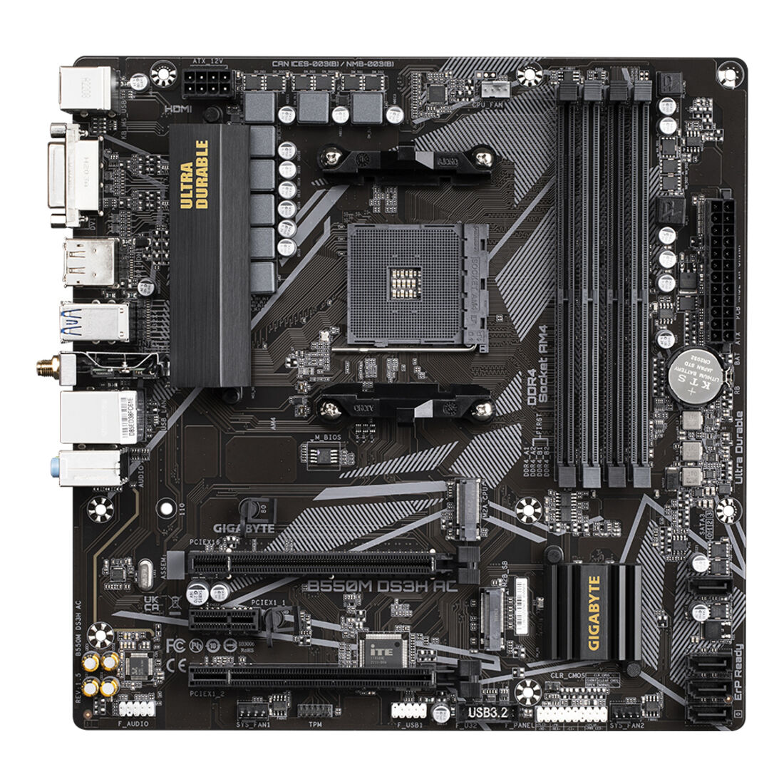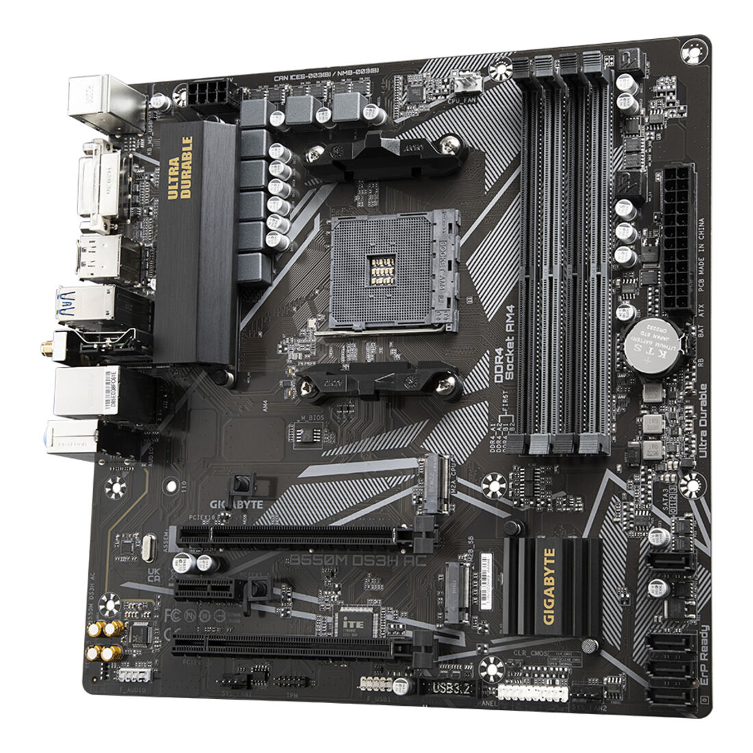 GIGABYTE B550M DS3H AC Scheda madre – CPU AMD Ryzen 5000, VRM a 5+3 fasi, fino a 4733 MHz DDR4, 1xPCIe 4.0 + 1xPCIe 3.0 M.2, Wi-Fi 5, LAN 1GbE, USB 3.2 Gen 1. Produttore processore: AMD, Presa per processore: Socket AM4, Processori compatibili: AMD Ryzen 3000 Series, AMD Ryzen 4000 Series, AMD Ryzen 5000 Series. Tipi di memoria supportati: DDR4-SDRAM, RAM massima supportata: 128 GB, tipo di slot di memoria: DIMM. Interfacce dell’unità di archiviazione supportate: M.2, SATA III, Tipi di unità di archiviazione supportate: HDD & SSD, Livelli RAID: 0, 1, 10. Risoluzione massima: 4096 x 2160 Pixel. Tipo di interfaccia Ethernet: Gigabit Ethernet, Controller LAN: Realtek RTL8111H, Wi-Fi standard: Wi-Fi 5 (802.11ac)