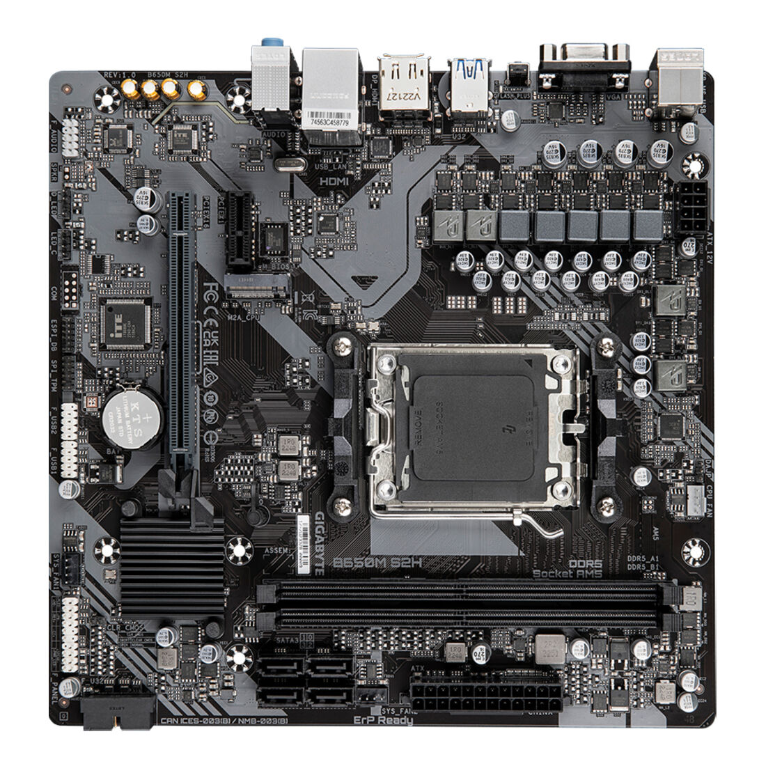 GIGABYTE B650M S2H Scheda madre – AMD Ryzen serie 9000, VRM a 5+2+2 fasi, fino a 6400 MHz DDR5 (OC), 1xPCIe 4.0 M.2, LAN GbE, USB 3.2 Gen 1. Produttore processore: AMD, Presa per processore: Socket AM5, Processori compatibili: AMD Ryzen 7000 Series, AMD Ryzen 8000 Series, AMD Ryzen 9000 Series. Tipi di memoria supportati: DDR5-SDRAM, RAM massima supportata: 128 GB, tipo di slot di memoria: DIMM. Interfacce dell’unità di archiviazione supportate: M.2, SATA III, Tipi di unità di archiviazione supportate: HDD & SSD, Livelli RAID: 0, 1, 10. Risoluzione massima: 4096 x 2160 Pixel. Tipo di interfaccia Ethernet: Gigabit Ethernet, Controller LAN: Realtek RTL8111H