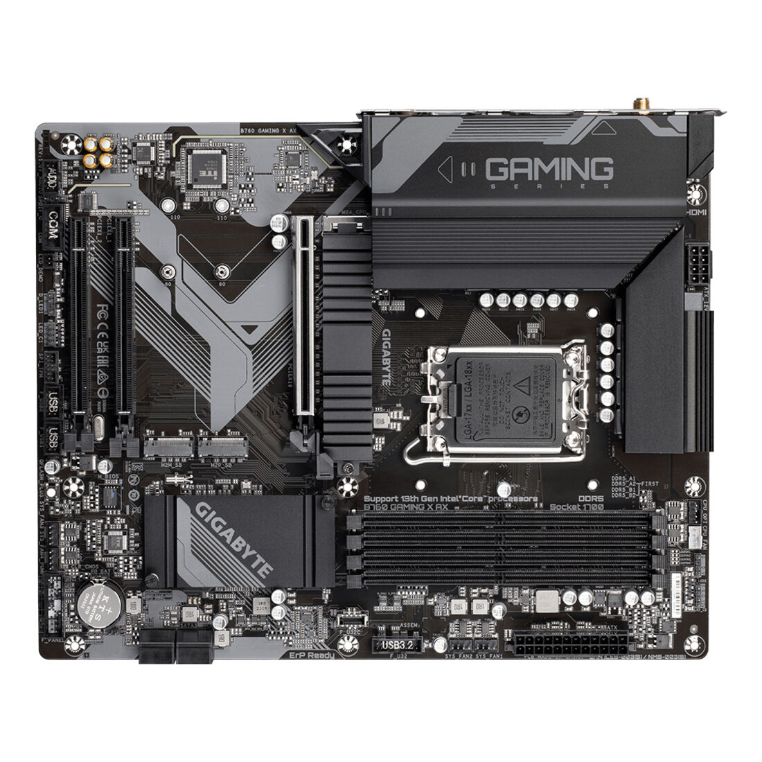 GIGABYTE B760 GAMING X AX Scheda Madre – Supporta processori Intel Core 14ª generazione, VRM digitale a 8+1+1 fasi, fino a 7600MHz DDR5 (OC), 3x PCIe 4.0 M.2, Wi-Fi 6E, 2.5GbE LAN, USB 3.2 Gen 2. Produttore processore: Intel, Presa per processore: LGA 1700, Processori compatibili: Intel® Celeron®, Intel® Core™ i3, Intel® Core™ i5, Intel® Core™ i7, Intel® Core™ i9,…. Tipi di memoria supportati: DDR5-SDRAM, RAM massima supportata: 256 GB, tipo di slot di memoria: DIMM. Interfacce dell’unità di archiviazione supportate: M.2, SATA III, Tipi di unità di archiviazione supportate: HDD & SSD, Livelli RAID: 0, 1, 5, 10. Risoluzione massima: 4096 x 2304 Pixel. Connettore USB: USB tipo A, USB tipo-C