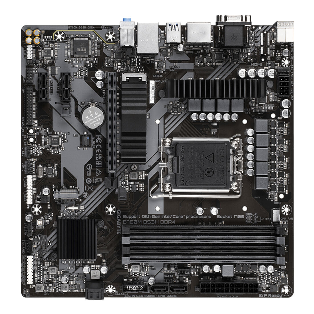 GIGABYTE B760M DS3H DDR4 Scheda Madre – Supporta CPU Intel Core di 14a Generazione, VRM Digitale 6+2+1 Fasi, fino a 5333MHz DDR4 (OC), 2xPCIe 4.0 M.2, LAN 2.5GbE, USB 3.2 Gen2. Produttore processore: Intel, Presa per processore: LGA 1700, Processori compatibili: Intel® Celeron®, Intel® Core™ i3, Intel® Core™ i5, Intel® Core™ i7, Intel® Core™ i9,…. Tipi di memoria supportati: DDR4-SDRAM, RAM massima supportata: 128 GB, tipo di slot di memoria: DIMM. Interfacce dell’unità di archiviazione supportate: M.2, SATA III, Tipi di unità di archiviazione supportate: HDD & SSD, Livelli RAID: 0, 1, 5, 10. Risoluzione massima: 4096 x 2304 Pixel. Tipo di interfaccia Ethernet: 2.5 Gigabit Ethernet