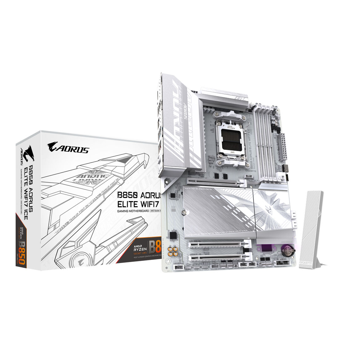 GIGABYTE B850 AORUS ELITE WIFI7 ICE Scheda Madre – CPU AMD Ryzen Serie 9000, VRM digitale 14+2+2 fasi, fino a 8200MHz DDR5 (OC), 1xPCIe 5.0 + 2xPCIe 4.0 M.2, LAN 2,5, WIFI 7, USB 3.2 Gen 2×2. Produttore processore: AMD, Presa per processore: Socket AM5, Processori compatibili: AMD Ryzen 7000 Series, AMD Ryzen 8000 Series, AMD Ryzen 9000 Series. Tipi di memoria supportati: DDR5-SDRAM, RAM massima supportata: 256 GB, tipo di slot di memoria: DIMM. Interfacce dell’unità di archiviazione supportate: M.2, SATA III, Tipi di unità di archiviazione supportate: HDD & SSD, Livelli RAID: 0, 1, 10. Risoluzione massima: 4096 x 2160 Pixel. Tipo di interfaccia Ethernet: 2.5 Gigabit Ethernet, Wi-Fi standard: Wi-Fi 7 (802.11be), Standard Wi-Fi: 802.11a, 802.11b, 802.11g, Wi-Fi 4 (802.11n), Wi-Fi 5 (802.11ac), Wi-Fi 6 (802.11ax), Wi-Fi 6E…