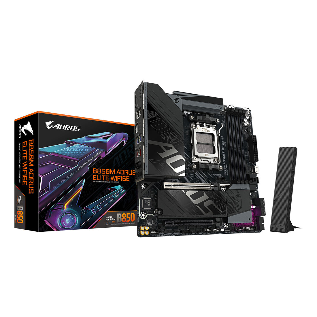GIGABYTE B850M AORUS ELITE WIFI6E Scheda madre – CPU AMD Ryzen serie 9000, VRM digitale a 12+2+2 fasi, fino a 8200 MHz DDR5 (O.C.), 1x M.2 PCIe 5.0 + 1x M.2 PCIe 4.0, Wi-Fi 6E, LAN 2.5 GbE, USB 3.2 Gen 2. Produttore processore: AMD, Presa per processore: Socket AM5, Processori compatibili: AMD Ryzen 7000 Series, AMD Ryzen 8000 Series, AMD Ryzen 9000 Series. Tipi di memoria supportati: DDR5-SDRAM, RAM massima supportata: 256 GB, tipo di slot di memoria: DIMM. Interfacce dell’unità di archiviazione supportate: M.2, PCI Express 4.0, PCI Express 5.0, SATA III, Tipi di unità di archiviazione supportate: HDD & SSD, Livelli RAID: 0, 1, 10. Risoluzione massima: 3840 x 2160 Pixel. Tipo di interfaccia Ethernet: 2.5 Gigabit Ethernet, Controller LAN: Realtek RTL8125, Wi-Fi standard: Wi-Fi 6E (802.11ax)