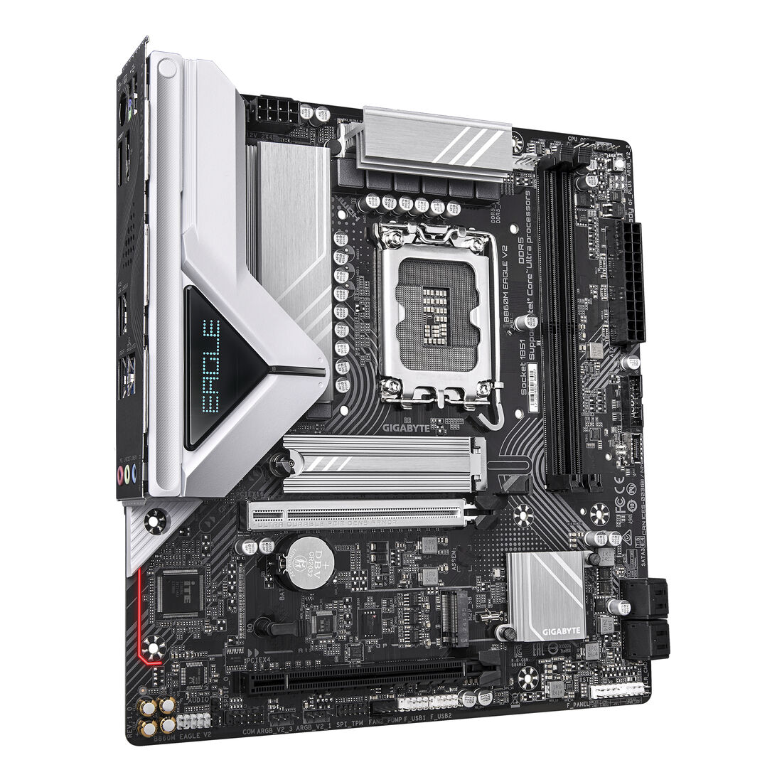 GIGABYTE B860M EAGLE V2 Scheda madre – CPU Intel Core Ultra Series, VRM a 6+1+2 fasi, fino a 9066 MHz DDR5, 1x M.2 PCIe 5.0 + 1x M.2 PCIe 4.0, LAN 2.5 GbE, USB 3.2 Gen 1. Produttore processore: Intel, Presa per processore: LGA 1851 (Socket V1), Processori compatibili: Intel Core Ultra (Series 2). Tipi di memoria supportati: DDR5-SDRAM, RAM massima supportata: 128 GB, tipo di slot di memoria: DIMM. Interfacce dell’unità di archiviazione supportate: M.2, PCI Express 4.0, PCI Express 5.0, SATA III, Tipi di unità di archiviazione supportate: HDD & SSD, Livelli RAID: 0, 1, 5, 10. Risoluzione massima: 4096 x 2160 Pixel. Tipo di interfaccia Ethernet: 2.5 Gigabit Ethernet, Controller LAN: Realtek RTL8125