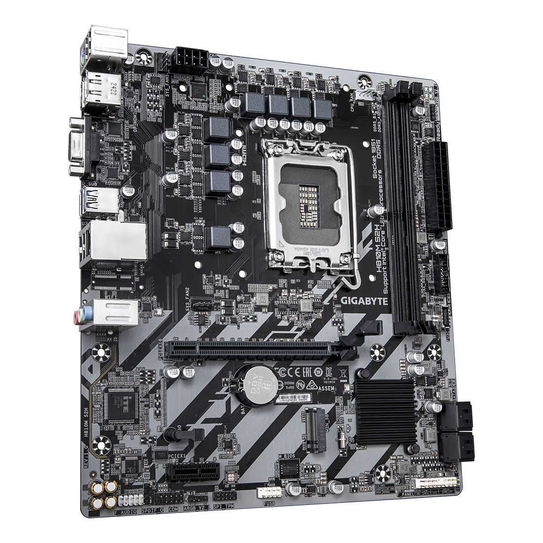 GIGABYTE H810M S2H Scheda madre – CPU Intel Core Ultra (Serie 2), VRM a 4+1+2 fasi, fino a 6400 MHz DDR5, 1xPCIe 4.0 M.2, LAN 1GbE, USB 3.2 Gen 1. Produttore processore: Intel, Presa per processore: LGA 1851 (Socket V1), Processori compatibili: Intel Core Ultra (Series 2). Tipi di memoria supportati: DDR5-SDRAM, RAM massima supportata: 128 GB, tipo di slot di memoria: DIMM. Interfacce dell’unità di archiviazione supportate: M.2, PCI Express 4.0, SATA III, Tipi di unità di archiviazione supportate: HDD & SSD, Livelli RAID: 0, 1, 5, 10. Risoluzione massima: 4096 x 2160 Pixel. Tipo di interfaccia Ethernet: Gigabit Ethernet, Controller LAN: Realtek RTL8111H