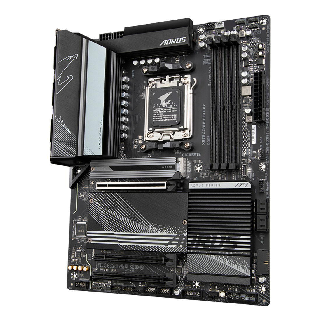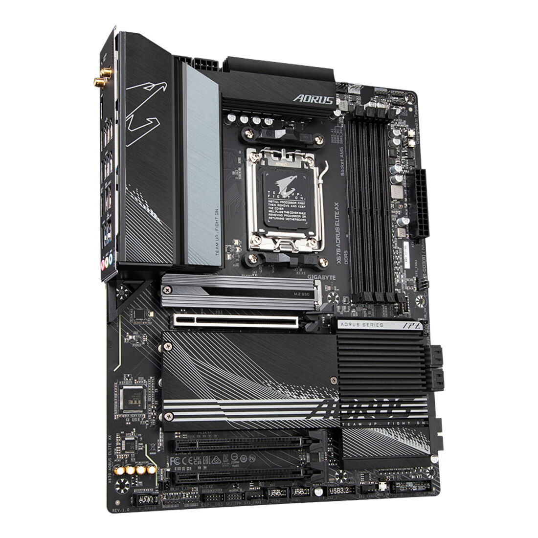 GIGABYTE X670 AORUS ELITE AX Scheda madre – Supporta AMD Ryzen 9000 Series CPUs, 16+2+2 Phases Digital VRM, up to 8000MHz DDR5 (OC), 1xPCIe 5.0 + 3xPCIe 4.0 M.2, Wi-Fi 6E, 2.5GbE LAN, USB 3.2 Gen 2×2. Produttore processore: AMD, Presa per processore: Socket AM5, Processori compatibili: AMD Ryzen™ 7. Tipi di memoria supportati: DDR5-SDRAM, RAM massima supportata: 192 GB, tipo di slot di memoria: DIMM. Interfacce dell’unità di archiviazione supportate: M.2, SATA II, Tipi di unità di archiviazione supportate: HDD & SSD, Livelli RAID: 0, 1, 10. Tipo di interfaccia Ethernet: 2.5 Gigabit Ethernet, Wi-Fi standard: Wi-Fi 6E (802.11ax), Standard Wi-Fi: 802.11a, 802.11b, 802.11g, Wi-Fi 4 (802.11n), Wi-Fi 5 (802.11ac), Wi-Fi 6 (802.11ax), Wi-Fi 6E…. Componente per: PC, Fattore di forma scheda madre: ATX, Famiglia di chipset per scheda madre: AMD
