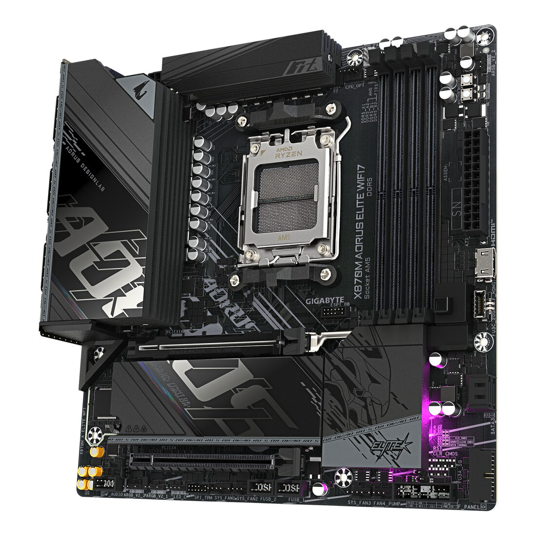 GIGABYTE X870M AORUS ELITE WIFI7 Scheda Madre – Supporta CPU AMD Ryzen 9000, VRM digitale a 14+2+2 fasi, fino a 8200 MHz DDR5 (OC), 1 x PCIe 5.0 + 1 x PCIe 4.0, Wi-Fi 7, LAN 2.5 GbE, USB 4. Produttore processore: AMD, Presa per processore: Socket AM5, Processori compatibili: AMD Ryzen 7000 Series, AMD Ryzen 8000 Series, AMD Ryzen 9000 Series. Tipi di memoria supportati: DDR5-SDRAM, RAM massima supportata: 256 GB, tipo di slot di memoria: DIMM. Interfacce dell’unità di archiviazione supportate: M.2, PCI Express 4.0, PCI Express 5.0, SATA III, Tipi di unità di archiviazione supportate: HDD & SSD, Livelli RAID: 0, 1, 5, 10. Risoluzione massima: 4096 x 2160 Pixel. Tipo di interfaccia Ethernet: 2.5 Gigabit Ethernet, Controller LAN: Realtek RTL8125, Wi-Fi standard: Wi-Fi 7 (802.11be)