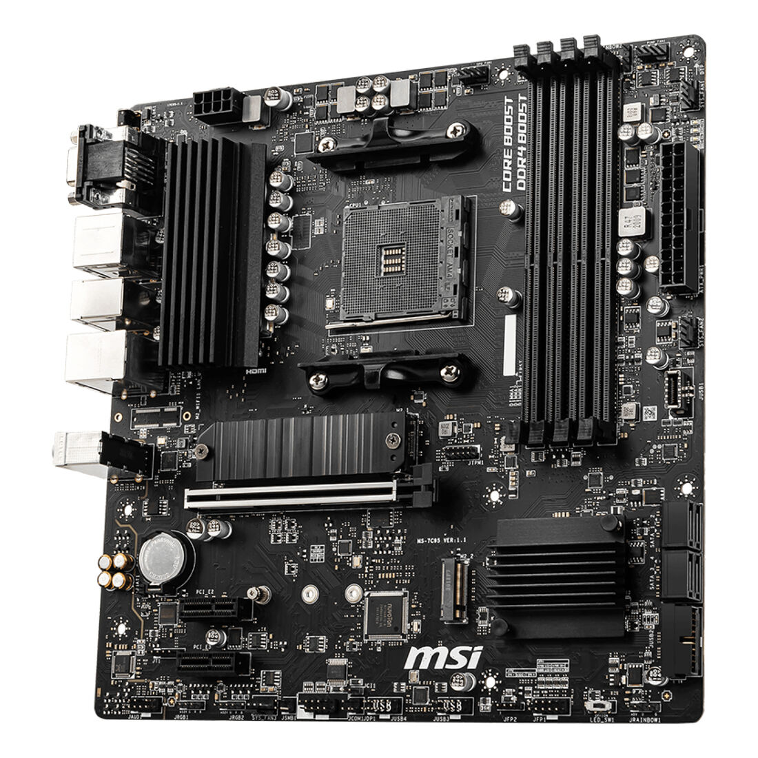 MSI B550M PRO-VDH. Produttore processore: AMD, Presa per processore: Socket AM4, Processori compatibili: AMD Ryzen 3000 Series. Tipi di memoria supportati: DDR4-SDRAM, RAM massima supportata: 128 GB, tipo di slot di memoria: DIMM. Interfacce dell’unità di archiviazione supportate: SATA III, Tipi di unità di archiviazione supportate: HDD & SSD, Livelli RAID: 0, 1, 10. Risoluzione massima: 4096 x 2160 Pixel. Tipo di interfaccia Ethernet: Gigabit Ethernet, Controller LAN: Realtek 8111HN