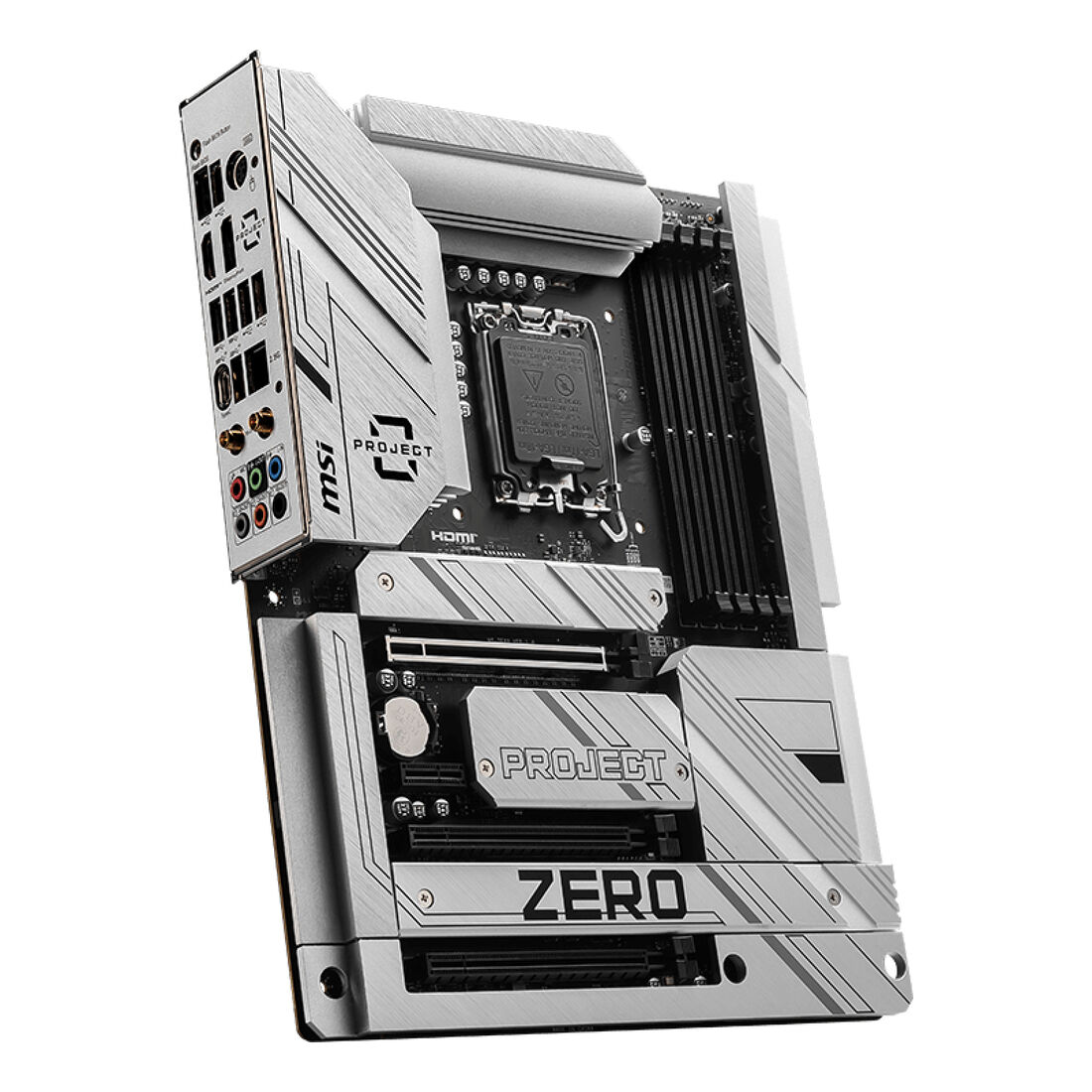 MSI Z790 PROJECT ZERO. Produttore processore: Intel, Presa per processore: LGA 1700, Processori compatibili: Intel® Celeron®, Intel® Pentium®, Intel® Pentium® Gold. Tipi di memoria supportati: DDR5-SDRAM, RAM massima supportata: 256 GB, tipo di slot di memoria: SO-DIMM. Interfacce dell’unità di archiviazione supportate: PCI Express 4.0, PCI Express 5.0, Livelli RAID: 0, 1, 5, 10. Tipo di interfaccia Ethernet: 2.5 Gigabit Ethernet, Wi-Fi standard: Wi-Fi 7 (802.11be), Standard Wi-Fi: 802.11a, 802.11b, 802.11g, Wi-Fi 4 (802.11n), Wi-Fi 5 (802.11ac), Wi-Fi 6 (802.11ax), Wi-Fi 6E…. Fattore di forma scheda madre: ATX, Famiglia di chipset per scheda madre: Intel, Chipset scheda madre: Intel Z790