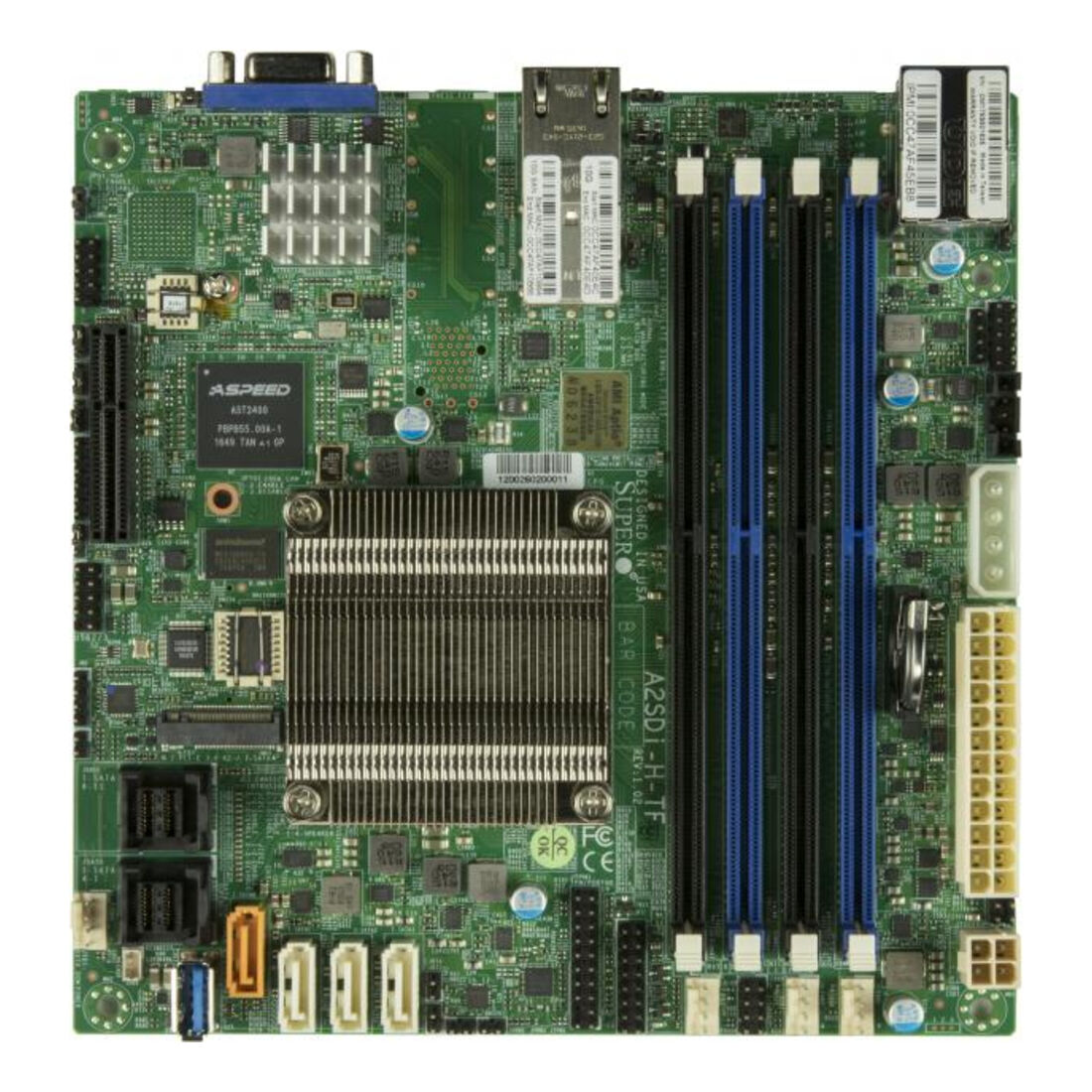 Supermicro A2SDi-H-TF. Produttore processore: Intel, Processori compatibili: Intel Atom®, Modello del processore: C3758. Tipi di memoria supportati: DDR4-SDRAM, RAM massima supportata: 256 GB, tipo di slot di memoria: DIMM. Interfacce dell’unità di archiviazione supportate: PCI Express, SATA III. Famiglia della scheda grafica: ASPEED, Adattatore grafico: AST2400. Tipo di interfaccia Ethernet: 10 Gigabit Ethernet