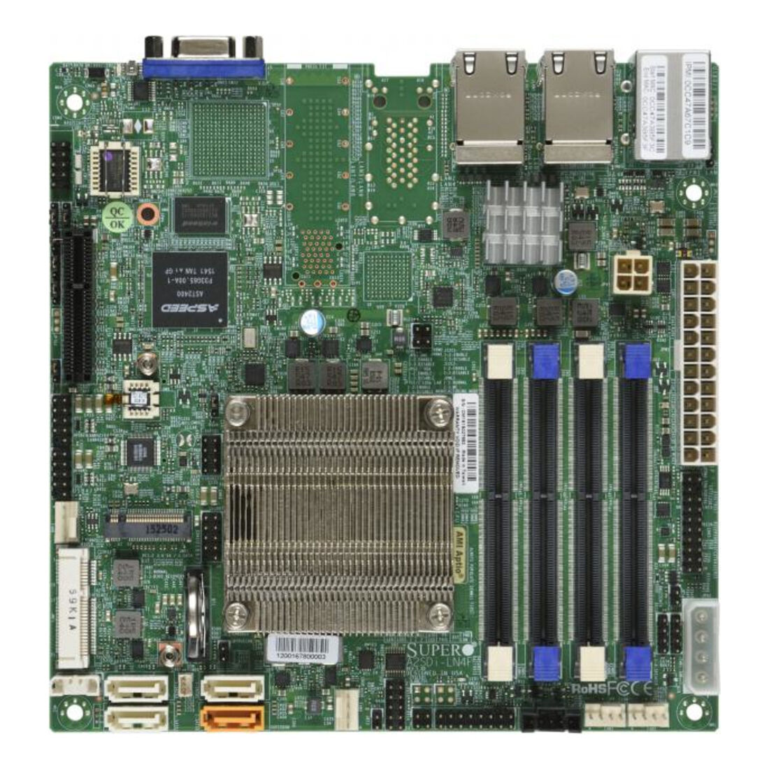 Supermicro A2SDi-LN4F. Produttore processore: Intel, Processori compatibili: Intel Atom®, Modello del processore: C3858. Tipi di memoria supportati: DDR4-SDRAM, RAM massima supportata: 64 GB, tipo di slot di memoria: DIMM. Interfacce dell’unità di archiviazione supportate: PCI Express, SATA III. Famiglia della scheda grafica: ASPEED, Adattatore grafico: AST2400. Tipo di interfaccia Ethernet: 10 Gigabit Ethernet, Gigabit Ethernet