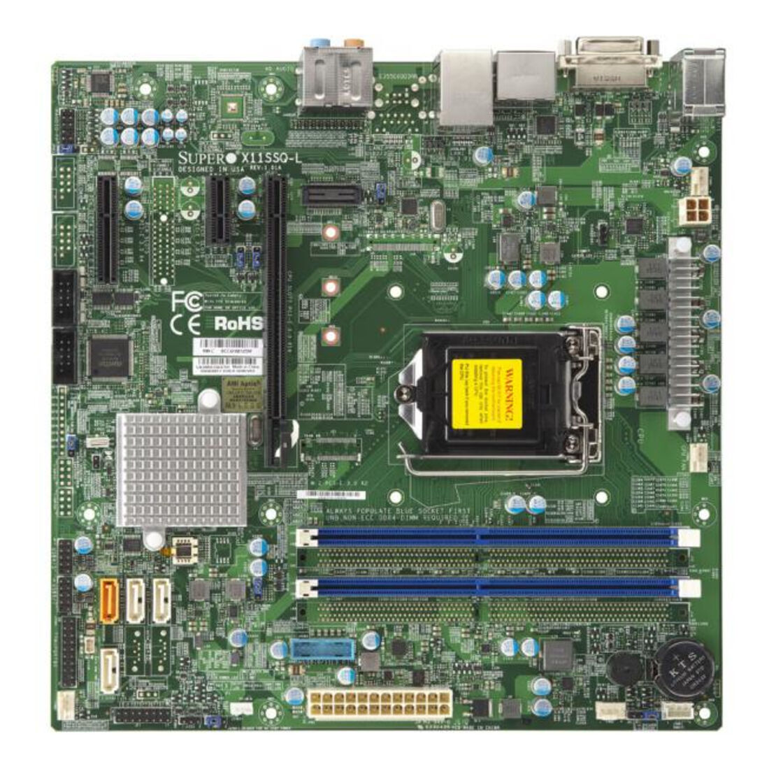 Supermicro X11SSQ-L. Produttore processore: Intel, Presa per processore: LGA 1151 (Socket H4), Processori compatibili: Intel® Celeron®, Intel® Pentium®. Tipi di memoria supportati: DDR4-SDRAM, tipo di slot di memoria: DIMM, ECC сompatibility: ECC & Non-ECC