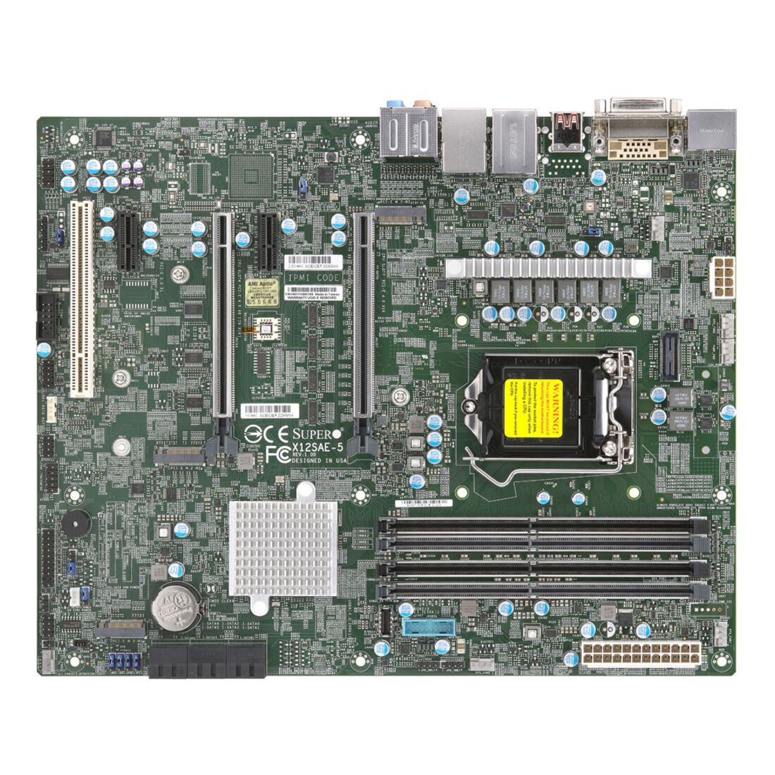 Supermicro X12SAE-5. Produttore processore: Intel, Presa per processore: LGA 1200 (Socket H5), Processori compatibili: Intel® Core™ i5, Intel® Core™ i7, Intel® Core™ i9. Tipi di memoria supportati: DDR4-SDRAM, RAM massima supportata: 128 GB, tipo di slot di memoria: DIMM. Interfacce dell’unità di archiviazione supportate: M.2, SATA, Livelli RAID: 0, 1, 5, 10. Versione HDMI: 2.0b, versione DisplayPort: 1.4a. Tipo di interfaccia Ethernet: 2.5 Gigabit Ethernet, Gigabit Ethernet, Controller LAN: Intel I225-V