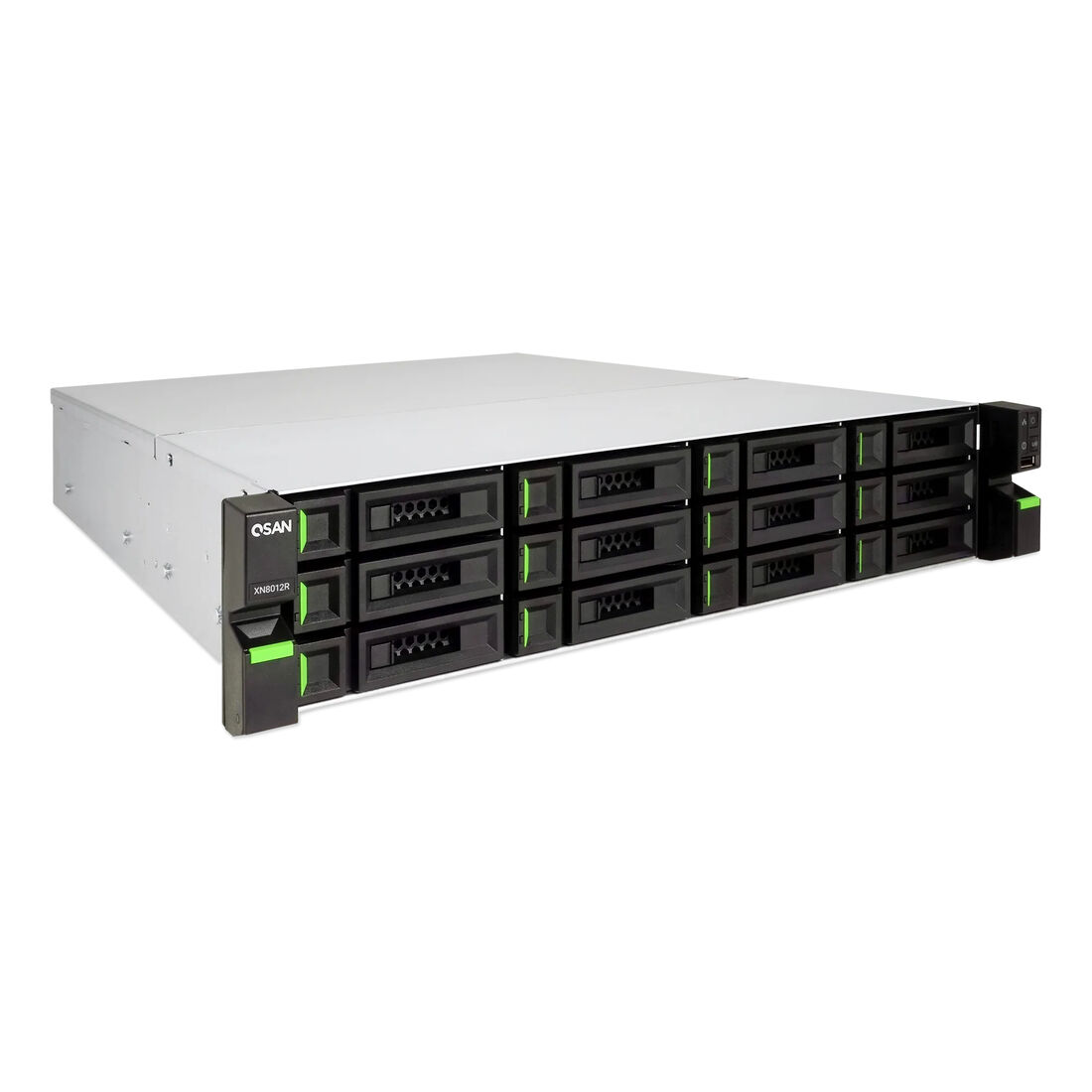 QSAN XN8012R. Tipo: NAS. Tipo di case: Armadio (2U). Classe del dispositivo: Piccola e media azienda. Famiglia processore: Intel® Xeon®, Modello del processore: D-1527, Frequenza del processore: 3,3 GHz. RAM installata: 8 GB, Tipo di RAM: DDR4. Tipi di unità di archiviazione installate: HDD