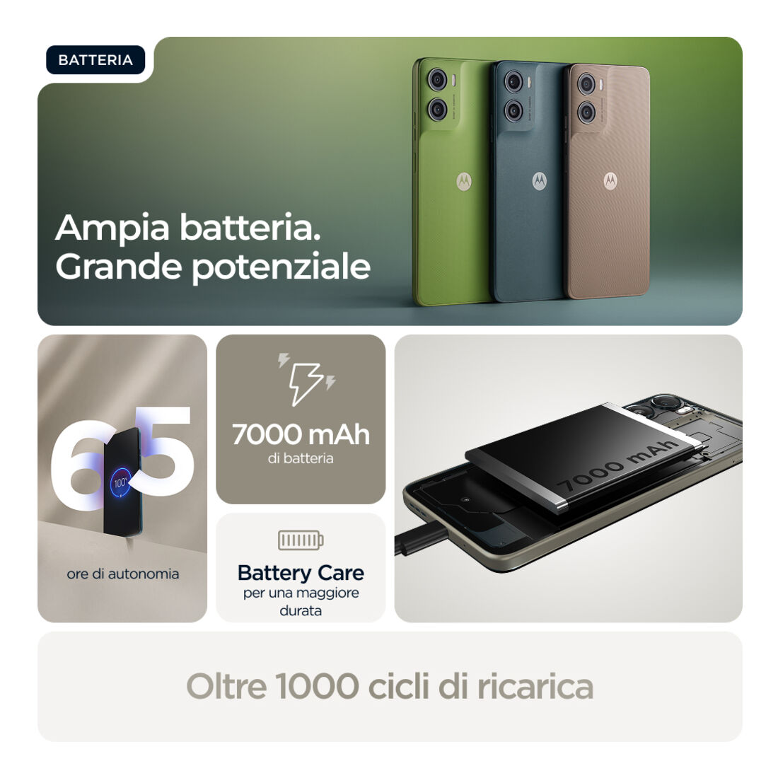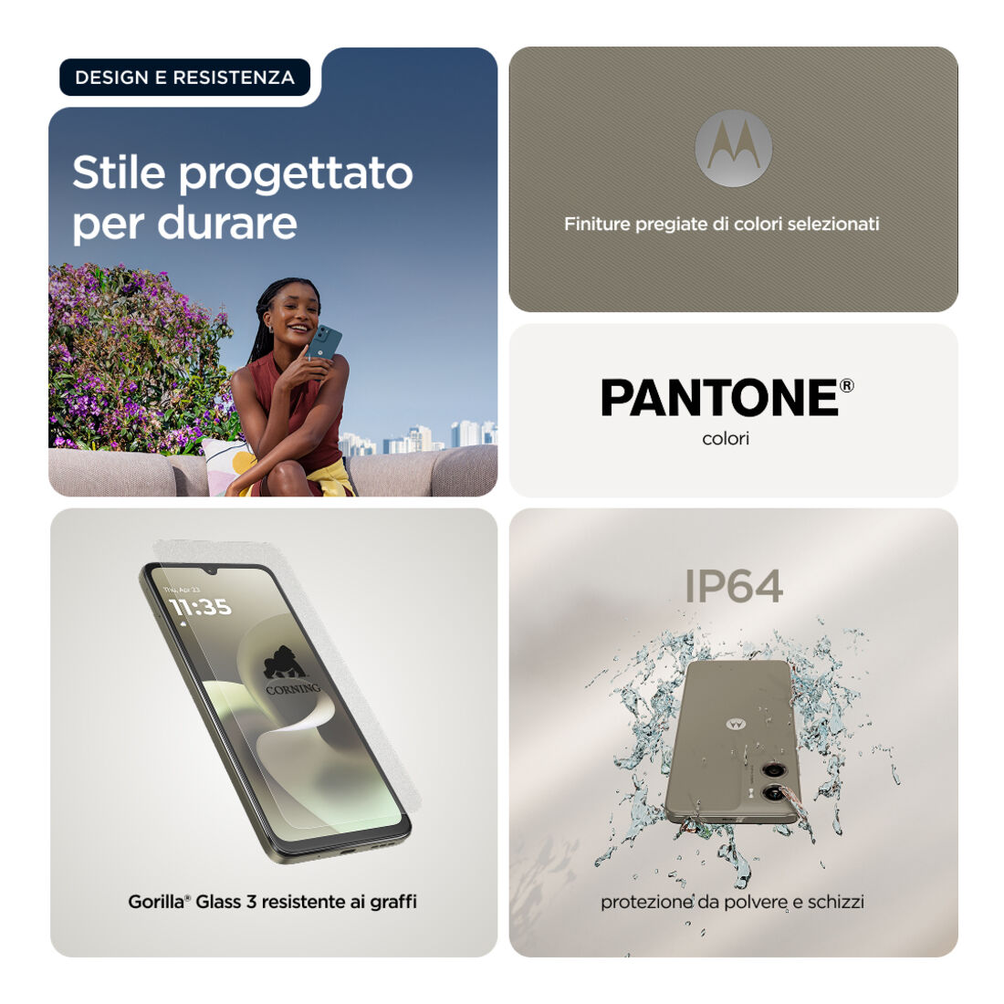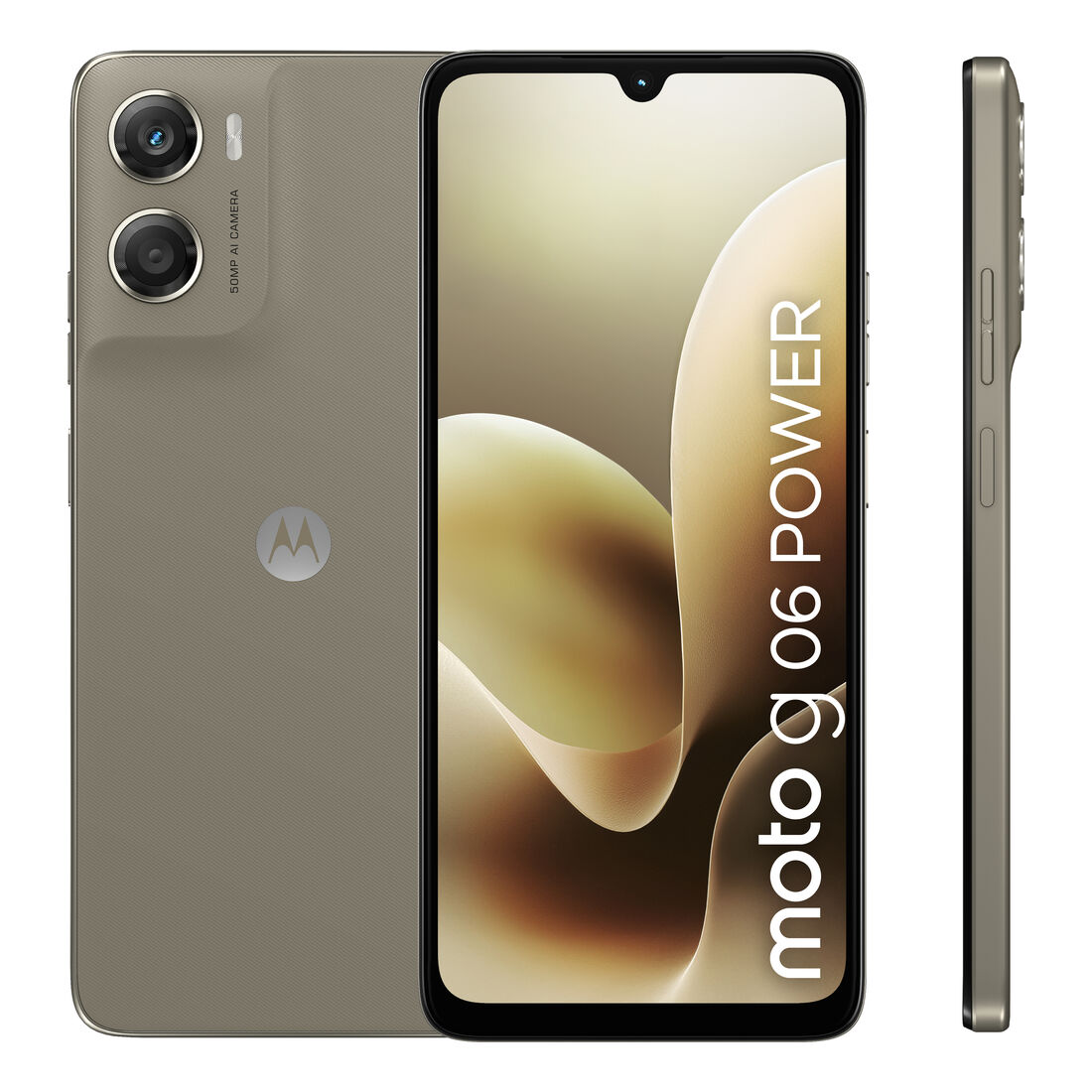 Motorola moto g06 power . Dimensioni diagonale schermo: 17,5 cm (6.88″), Risoluzione del display: 1640 x 720 Pixel. Frequenza del processore: 1,7 GHz, Famiglia processore: MediaTek, Modello del processore: Helio G81 Extreme. Capacità della RAM: 4 GB, Capacità memoria interna: 64 GB. Risoluzione fotocamera posteriore (numerico): 50 MP, Tipo di fotocamera posteriore: Fotocamera singola. Capacità della scheda SIM: Doppia SIM. Sistema operativo incluso: Android 15. Capacità della batteria: 7000 mAh. Colore del prodotto: Cachi. Peso: 220 g