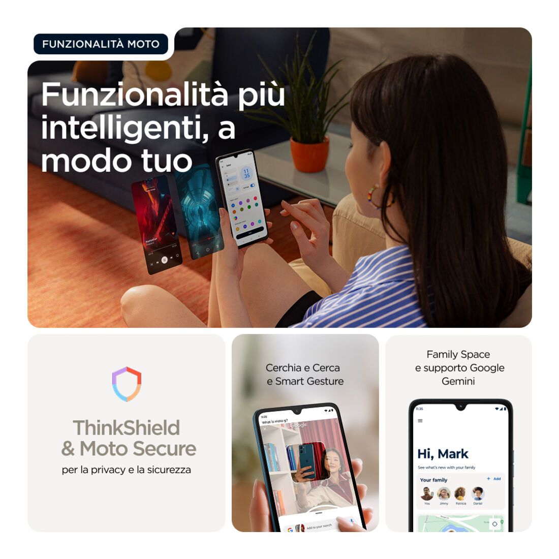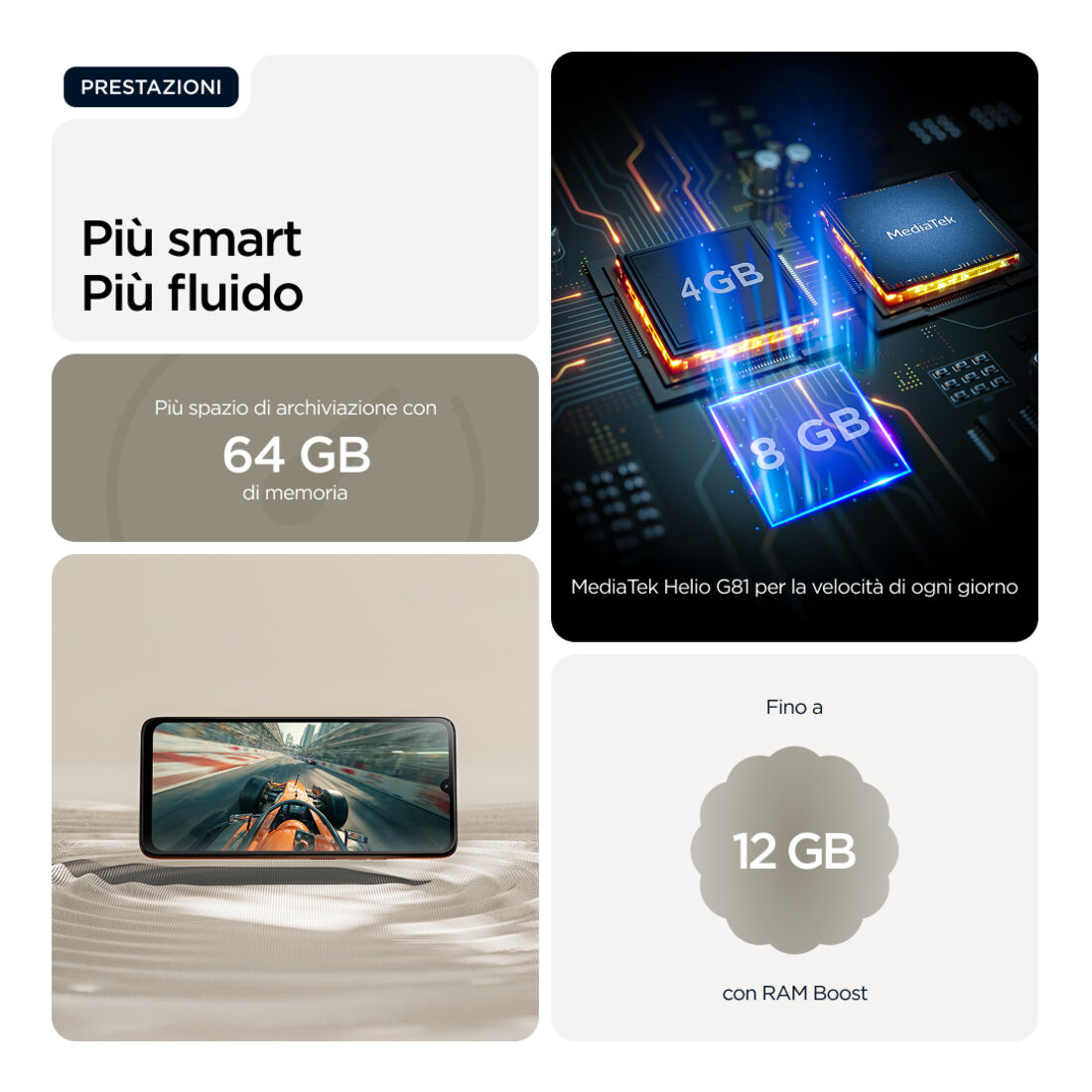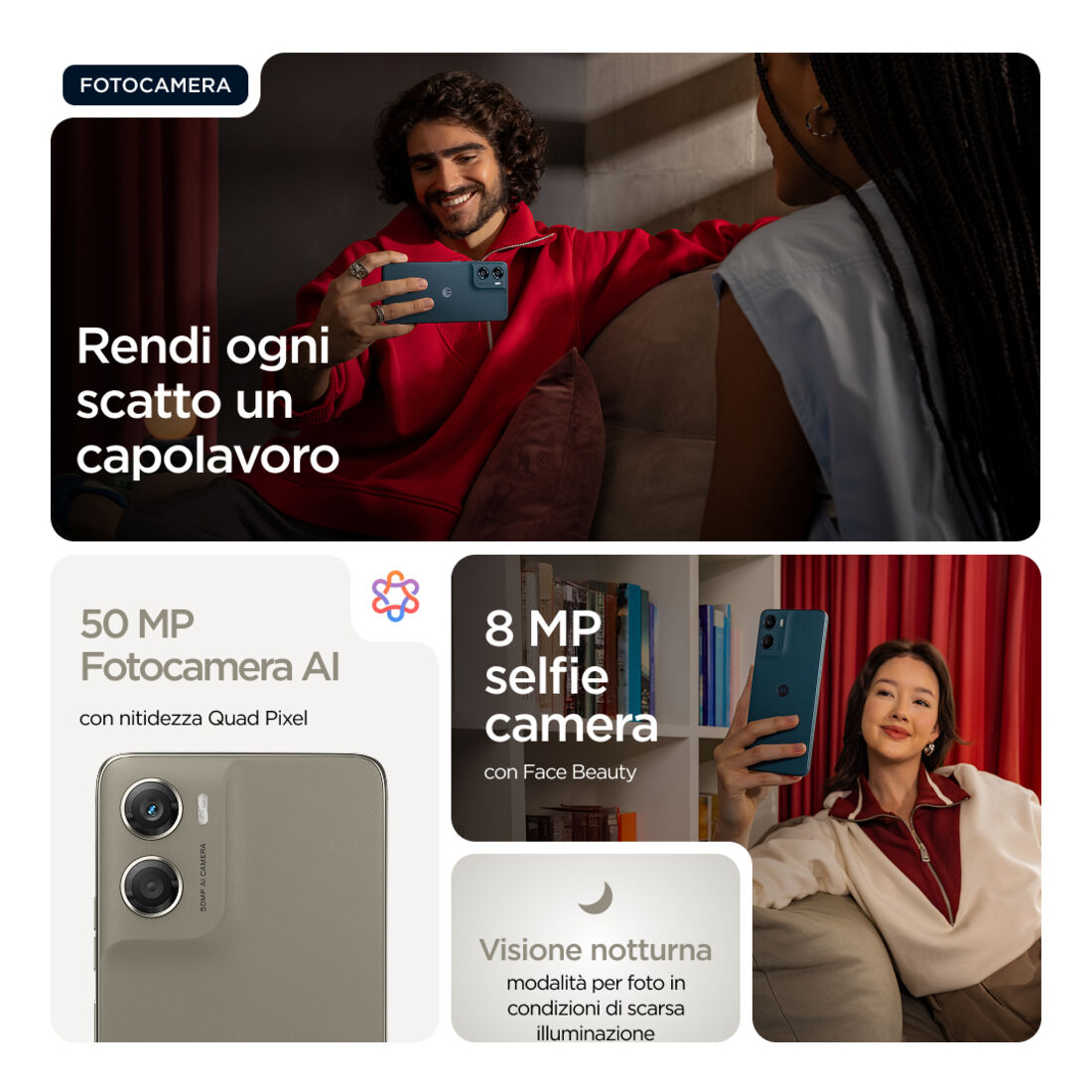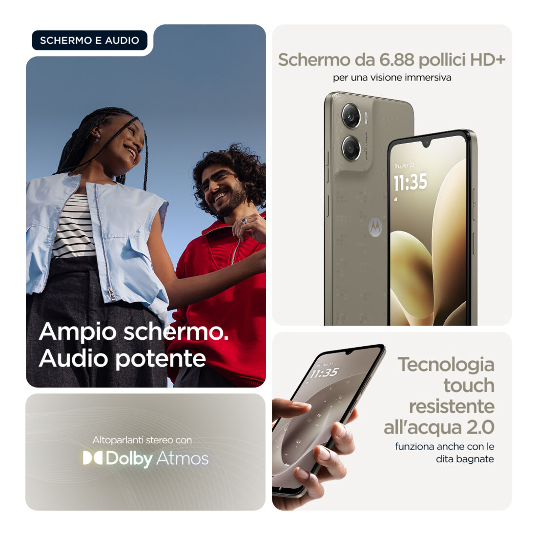 Motorola moto g06 power . Dimensioni diagonale schermo: 17,5 cm (6.88″), Risoluzione del display: 1640 x 720 Pixel. Frequenza del processore: 1,7 GHz, Famiglia processore: MediaTek, Modello del processore: Helio G81 Extreme. Capacità della RAM: 4 GB, Capacità memoria interna: 64 GB. Risoluzione fotocamera posteriore (numerico): 50 MP, Tipo di fotocamera posteriore: Fotocamera singola. Capacità della scheda SIM: Doppia SIM. Sistema operativo incluso: Android 15. Capacità della batteria: 7000 mAh. Colore del prodotto: Cachi. Peso: 220 g