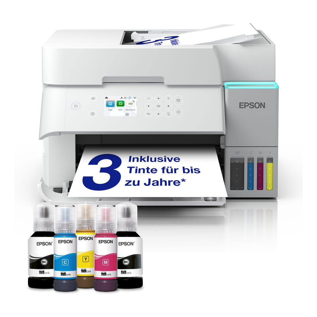 Epson EcoTank ET-3956. Tecnologia di stampa: Ad inchiostro, Stampa: Stampa a colori, Risoluzione massima: 4800 x 1200 DPI, Velocità di stampa (colore, qualità normale, A4/US Letter): 23 ppm. Copia: Mono copia. Scansione: Scansione a colori, Risoluzione di scansione ottica: 1200 x 2400 DPI. Funzione duplex: Copia, Stampa, Scansione. Massimo formato carta serie ISO A: A4. Wi-Fi. Stampa diretta. Colore del prodotto: Bianco
